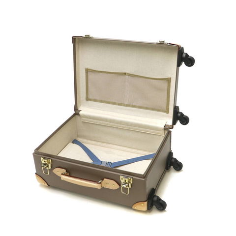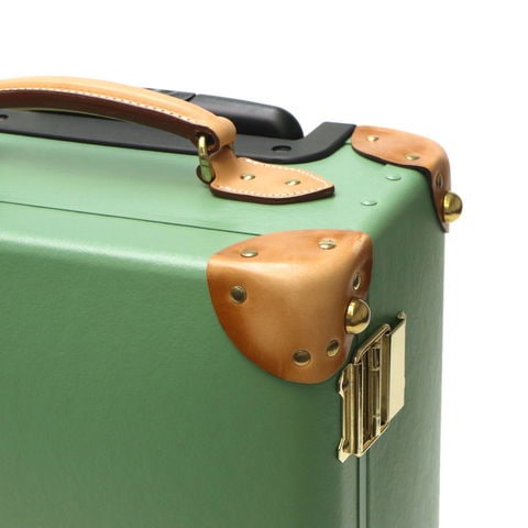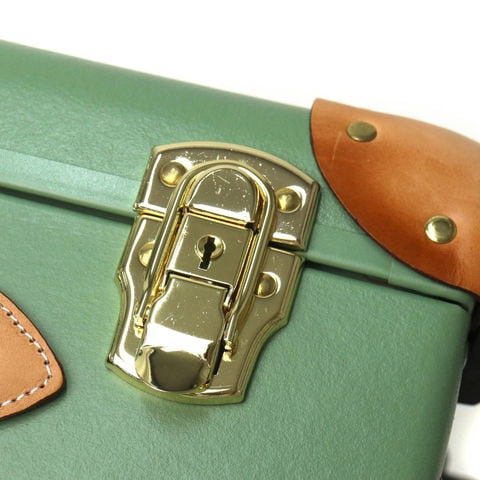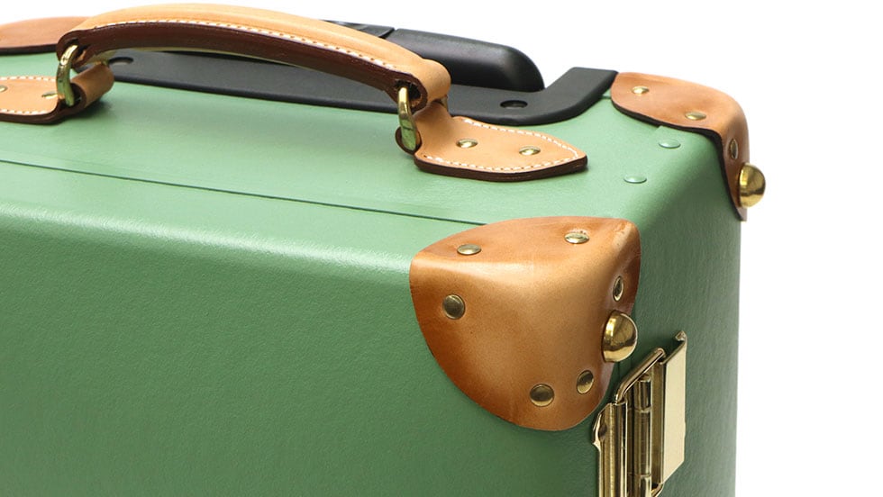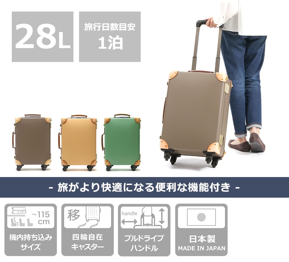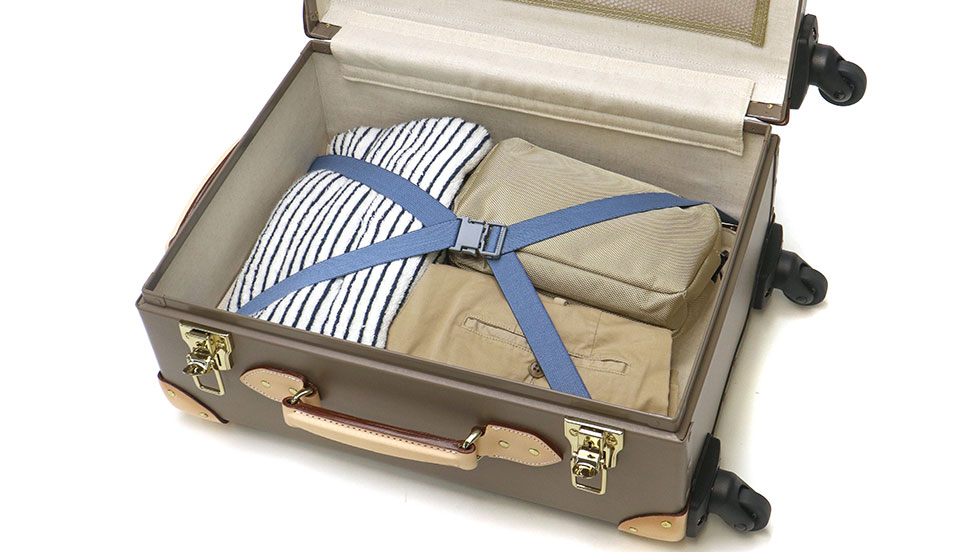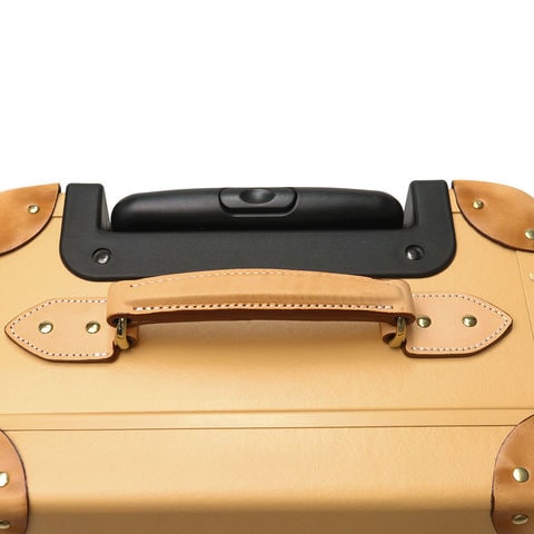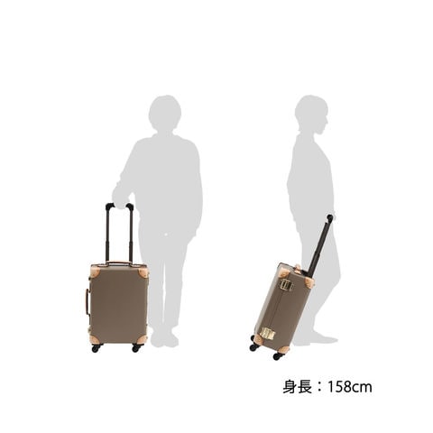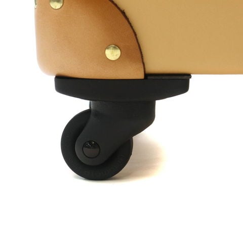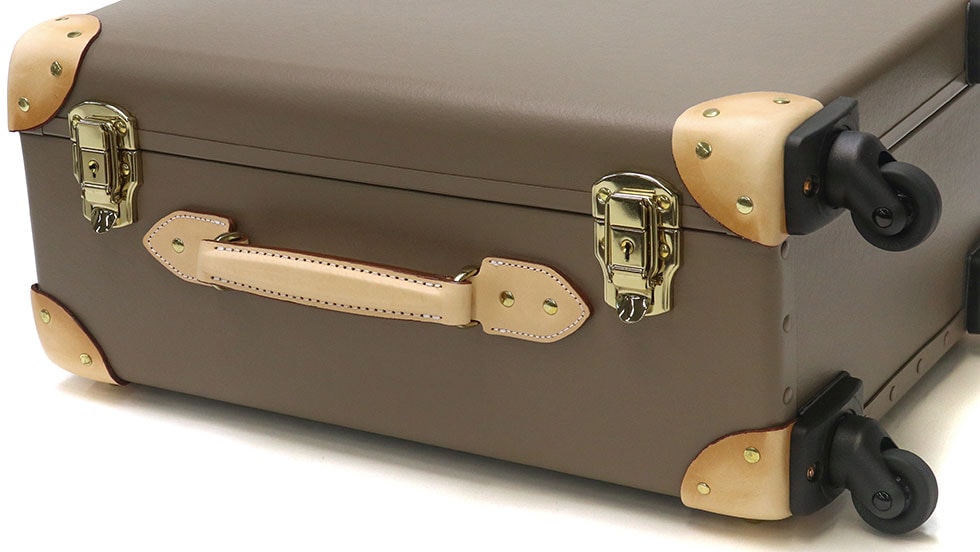 開閉部分には金メッキ仕上げのパチン鍵を採用し、付属の鍵できちんとロックができる安心設計。操作性に優れた4輪キャスターや、3段階で長さ調節ができるキャリーハンドルも使い勝手を向上しています。