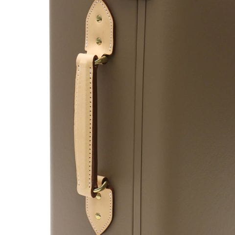 素材には耐久性、耐摩耗性、絶縁性などに優れたヴァルカナイズド・ファイバーを使用。高純度のパルプ繊維原紙を何層にも積層し、一体処理することで生まれた硬質繊維ボードです。ハードな中にも素朴さ、自然の風合いを感じさせます。付属部にはヌメ革を採用し、愛用する程に味わい深い表情へ変化していきます。