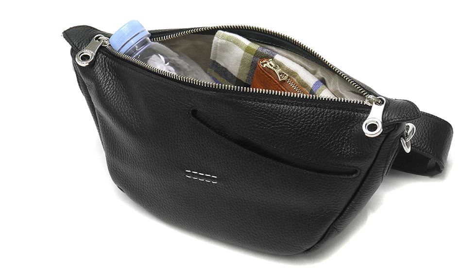 収納部は、必需品の収納に役立つ使い勝手の良いサイズ感。本体フォルムは膨らみが維持されるよう設計されているため、荷物の出し入れが行いやすくなっています。さらに、本体の前面背面には共に、小物が出し入れしやすいオープンポケットを装備。荷物の管理が行いやすいのも使いやすさのポイントです。
