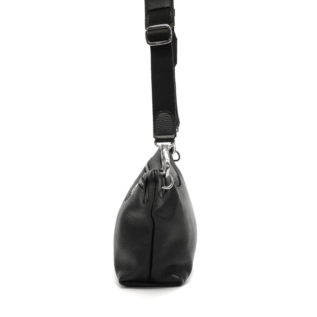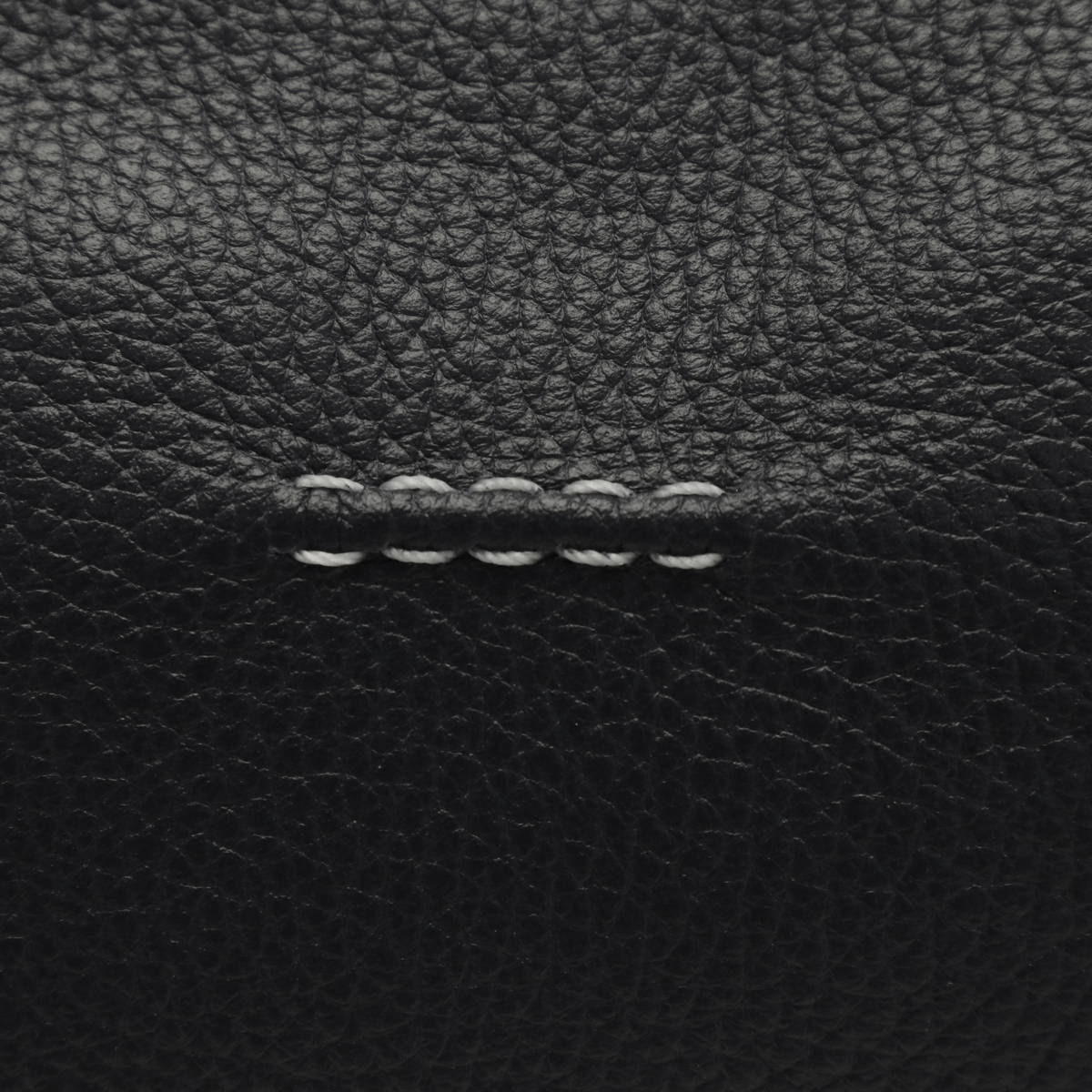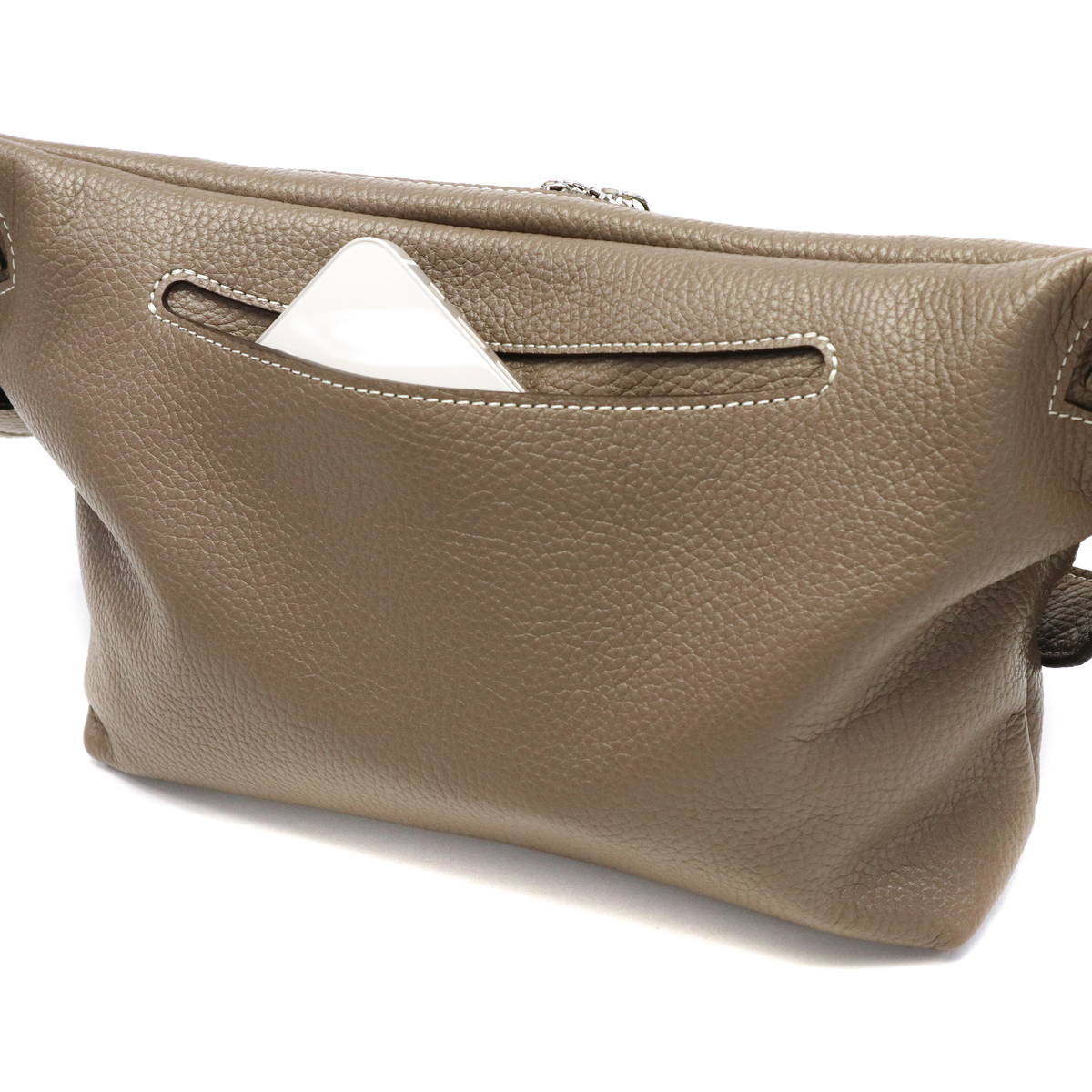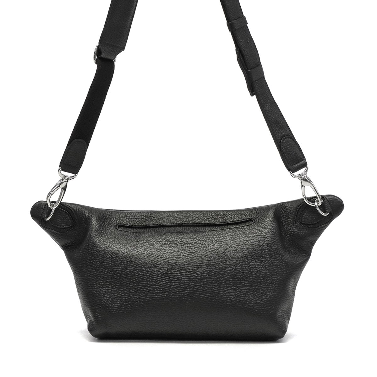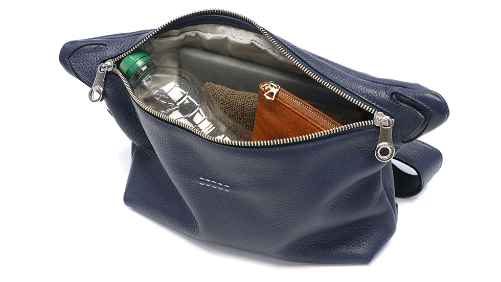 収納部はA5サイズの荷物が丁度収まるサイズ感で、長財布や手帳、文庫本などが収納できます。本体の背面側には小さなオープンポケットもあり、携帯やパスケースの出し入れも楽々行えます。必要なものを最低限持ち歩く方にはぴったりの、使い心地の良いコンパクトサイズです。
