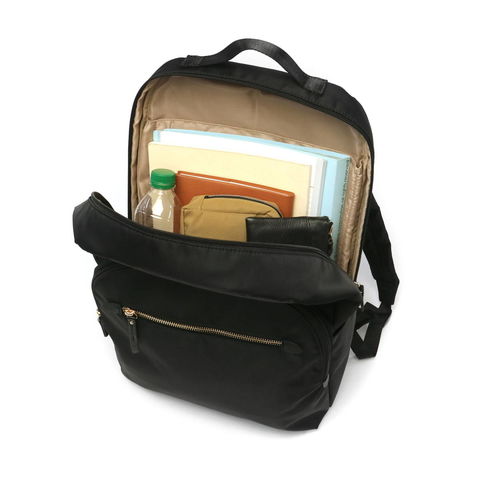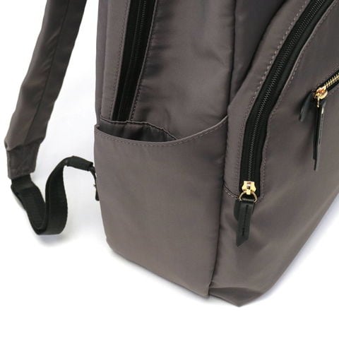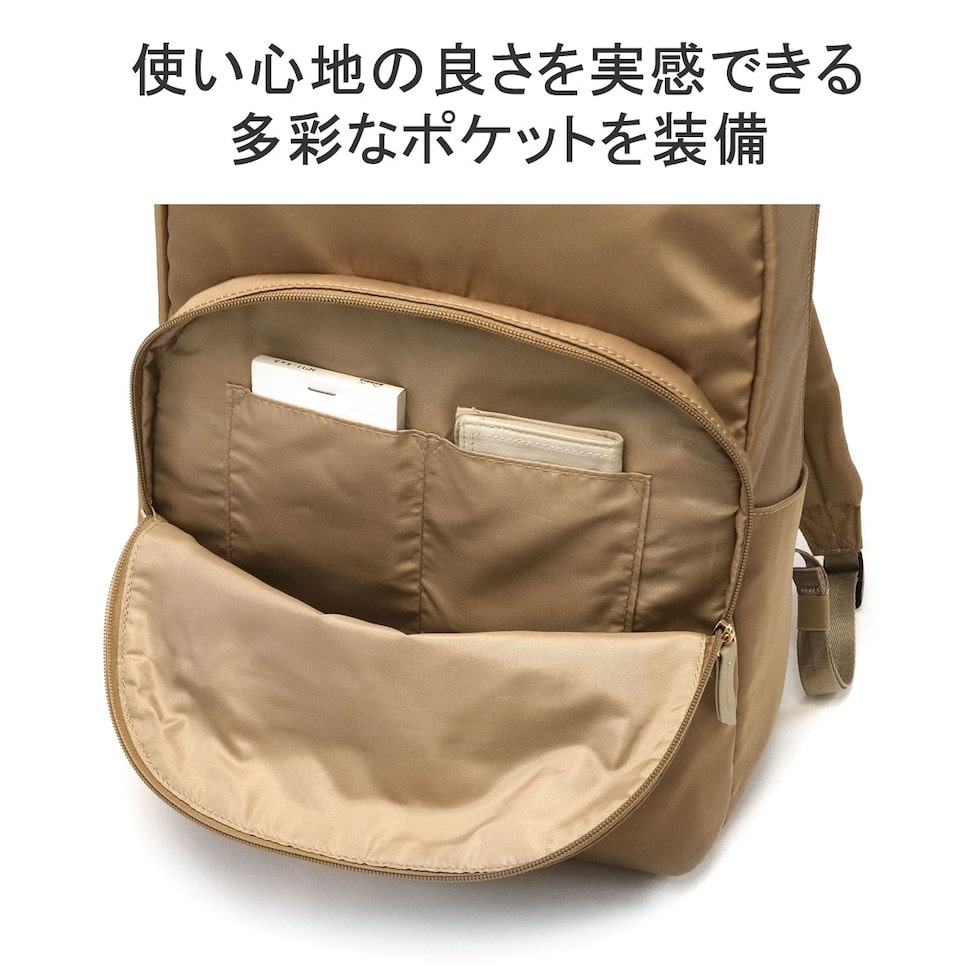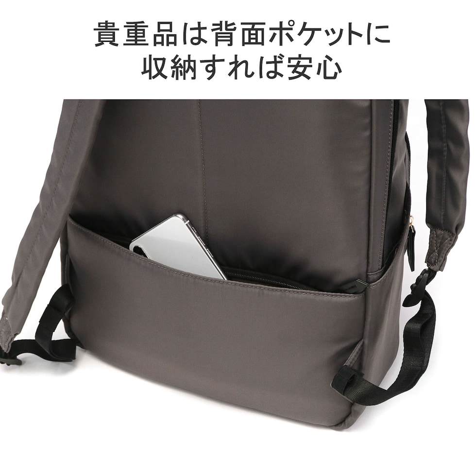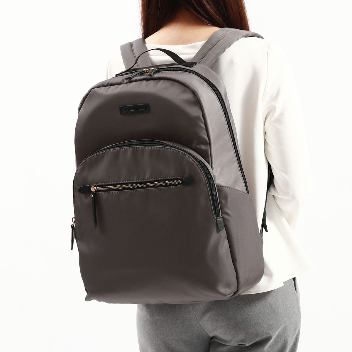 女性らしいラウンド型が魅力のシンプルで綺麗めなリュックシリーズ「フェリシア」。こちらは、お仕事用にぴったりなB4サイズ対応モデルです。多彩なポケットやボトルホルダーなど機能的でありながら、上品で洗練されたデザインが魅力。働く女性をサポートする大容量リュックです。