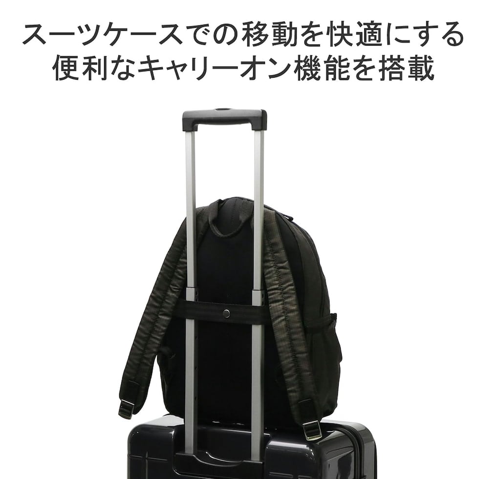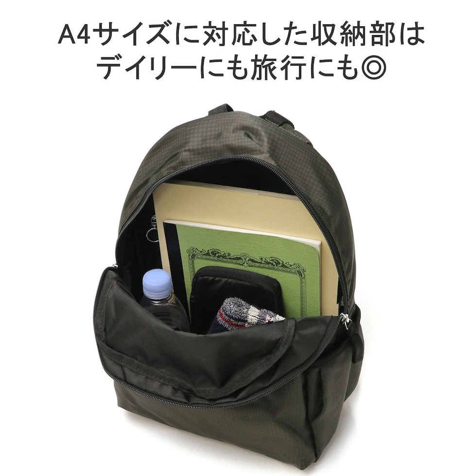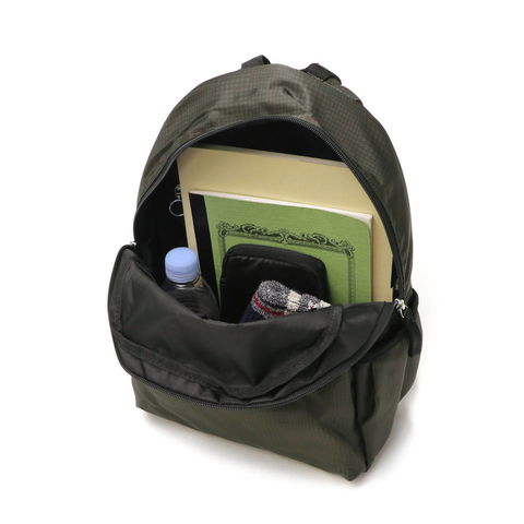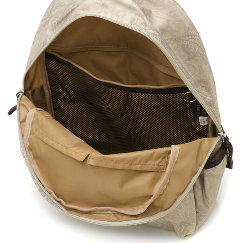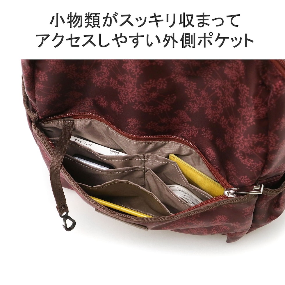 落ち着いた色合いと、カラーごとに異なるシックなプリントが印象的な『ラコルト』シリーズのリュックサック。収納部はA4サイズに対応した、デイリーに使いやすいサイズ感。フロントポケットには5か所のポケットとキーフックを内蔵し、小物がスッキリと片付きます。また、背面にはスーツケースに連結できるキャリーオン機能を搭載。普段使いから旅行のサブバッグまで、多用途で活躍するアイテムです。