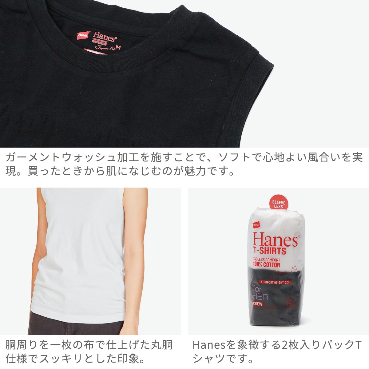 ヘインズ ノースリーブ レディース Hanes スリーブレス シンプル インナー 綿100% コットン 無地 白 黒 2枚組 タンクトップ ウィメンズ ジャパンフィット Japan Fit for HER スリーブレスTシャツ 5.3oz HW5327