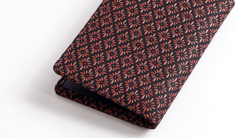 留め具のない二つ折り仕様の本体は、開くと両面にカードポケットを備えており、使用頻度の高いカードを分かりやすく収納するのに役立ちます。コンパクトながら、職人が生み出した美しい柄が存在感のある美しさを演出。甲州に四百年もの長い年月受け継がれる心、その脈々と受け継がれる職人の技と心が生み出す伝統美を手に取って味わっていただけます。