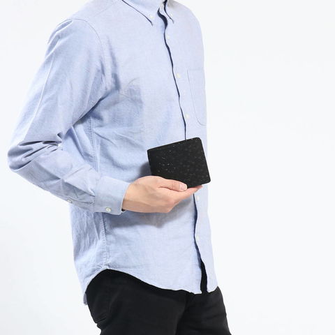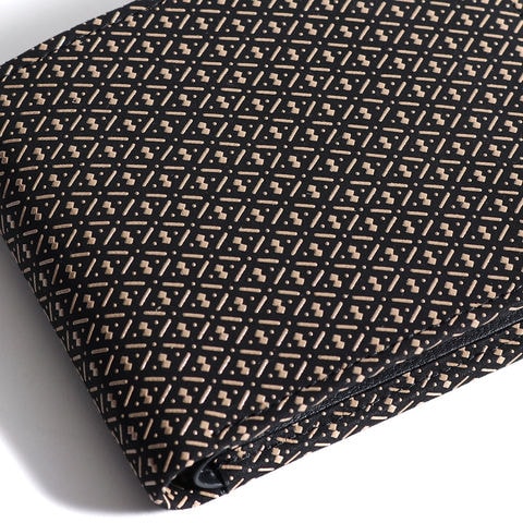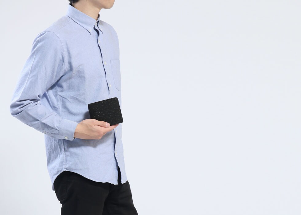 柔らかな鹿革の風合いに、漆柄が魅力の革工芸「印伝」の二つ折り財布です。メイン素材には古くから人々に愛されてきた鹿革を使用。鹿革は軽く、丈夫なだけでなく柔らかな肌触りは、人肌に最も近いとされています。その鹿革に時がたつほど色艶が冴え、光沢に深みが増す「漆」を印伝づくりに取り入れたのが遠祖・上原勇七なのです。