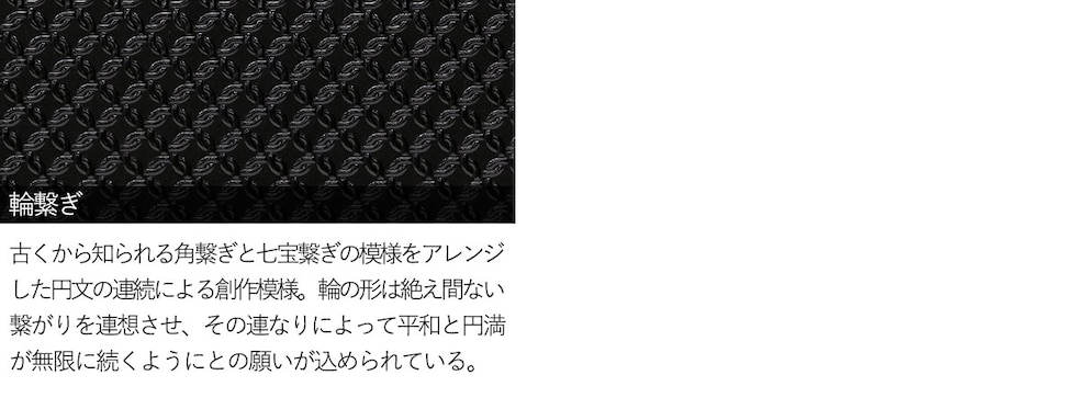 カラー|青海波(紺×白)|14-004、ひょうたん(黒×白)|11-007、ひょうたん(紺×白)|14-007、とんぼ(黒×黒)|1-008、変わり市松小(黒×黒)|1-167、変わり市松小(紺×黒)|4-167、輪繋ぎ極小(紺×白)|14、輪繋ぎ極小(紺×赤)|24