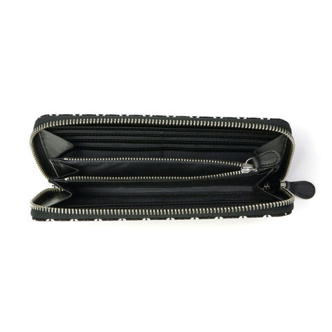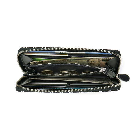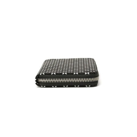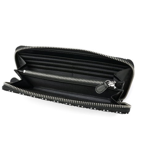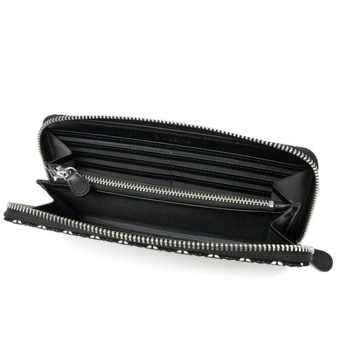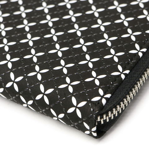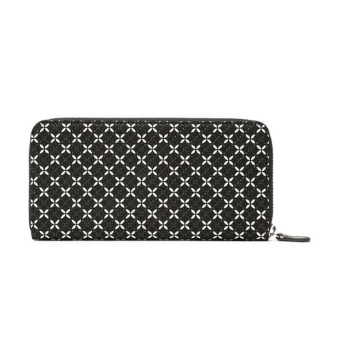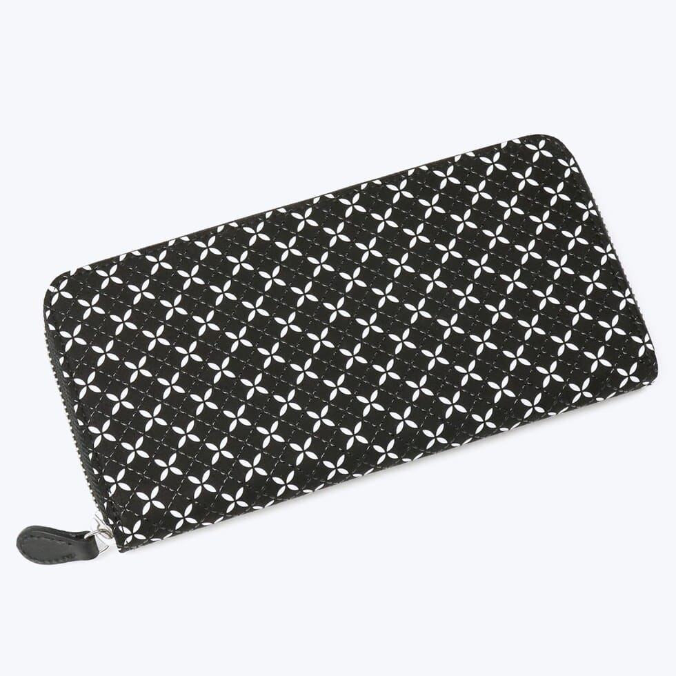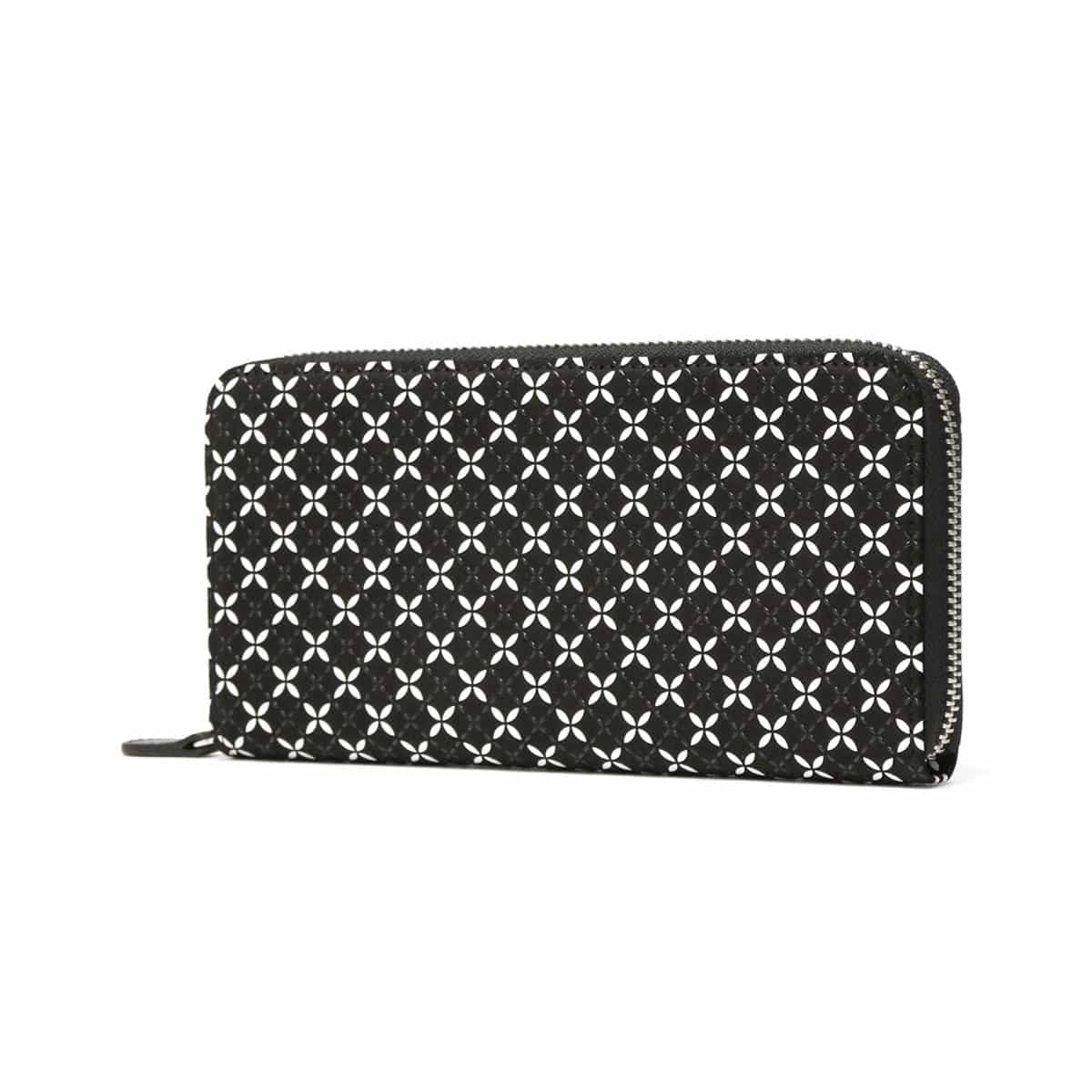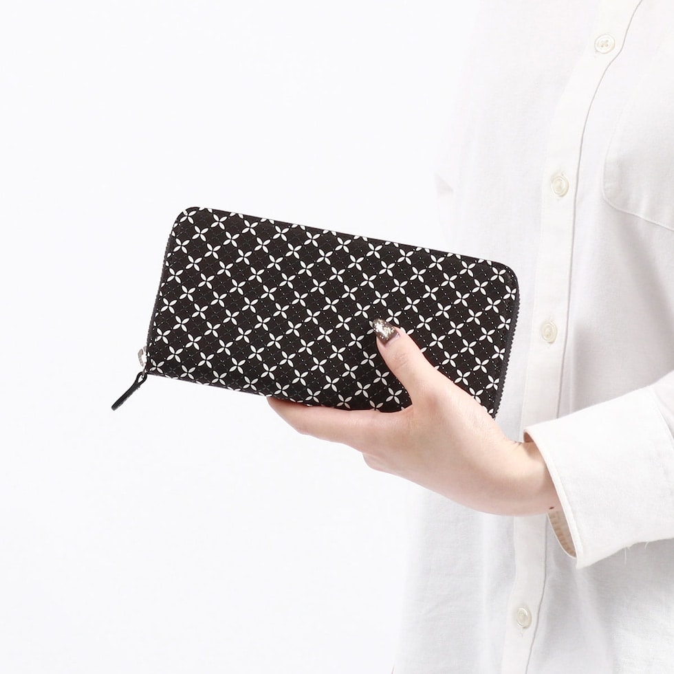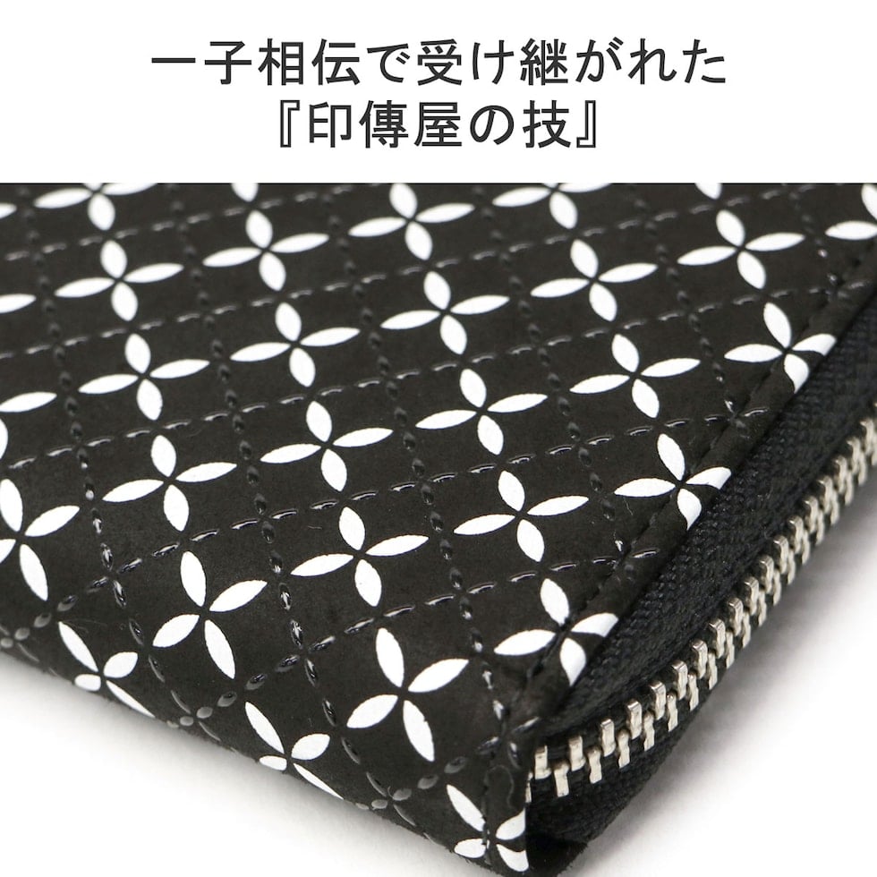 柔らかな鹿革の風合いに、漆柄が魅力の革工芸「印伝」のラウンドファスナー長財布です。こちらの「そよか」は、軽やかで気の向くままに進んでいく“そよ風”をイメージしたシリーズ。幸せや縁が広がる模様として親しまれる七宝をつなげて、白更紗と黒漆のコントラストで描き、調和によって生まれるかたちを際立たせました。お札や小銭、カードのすべてを収納できるベーシックなデザインで使い勝手よさも魅力となっています。
