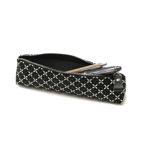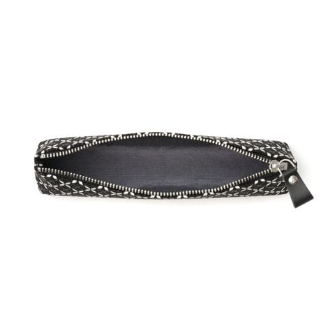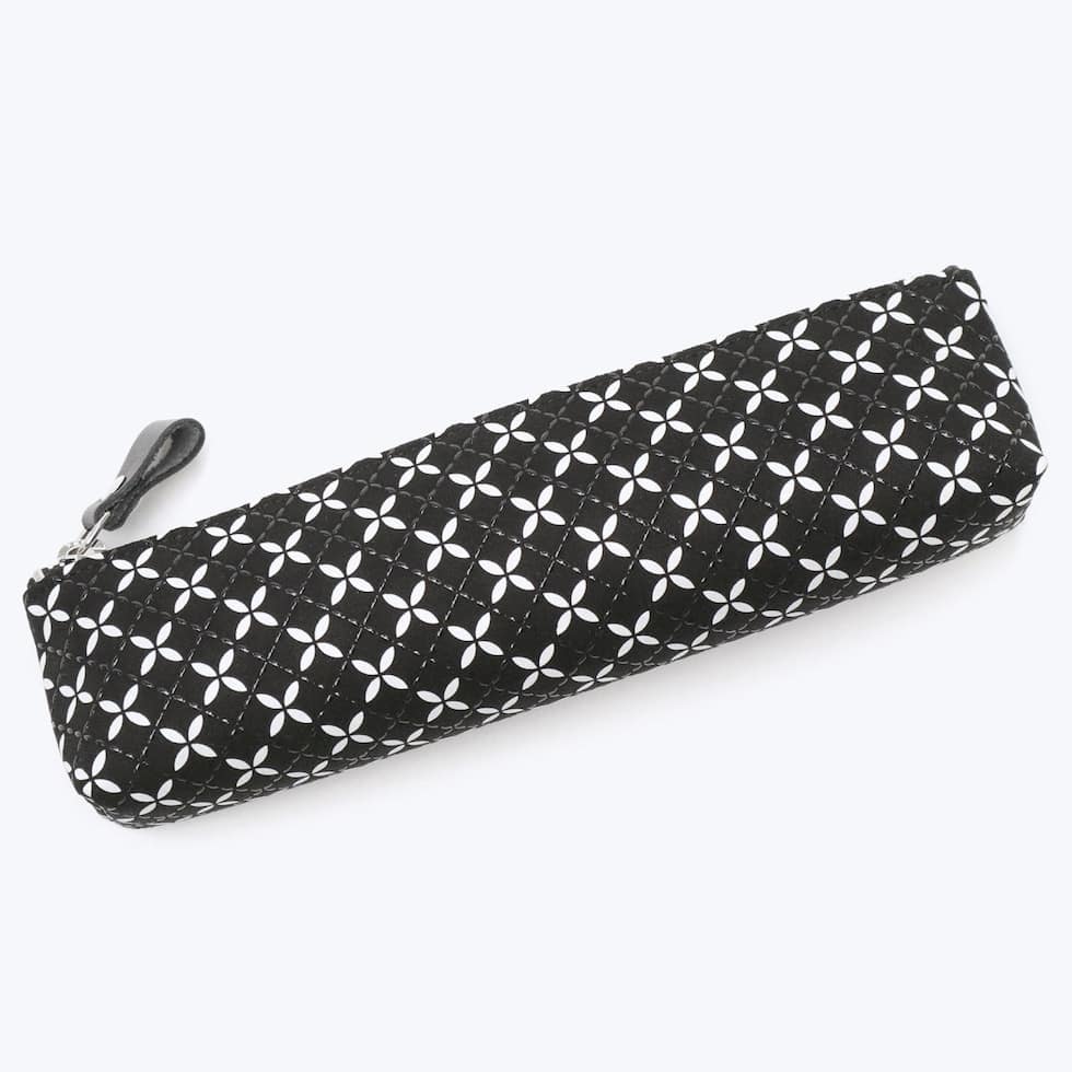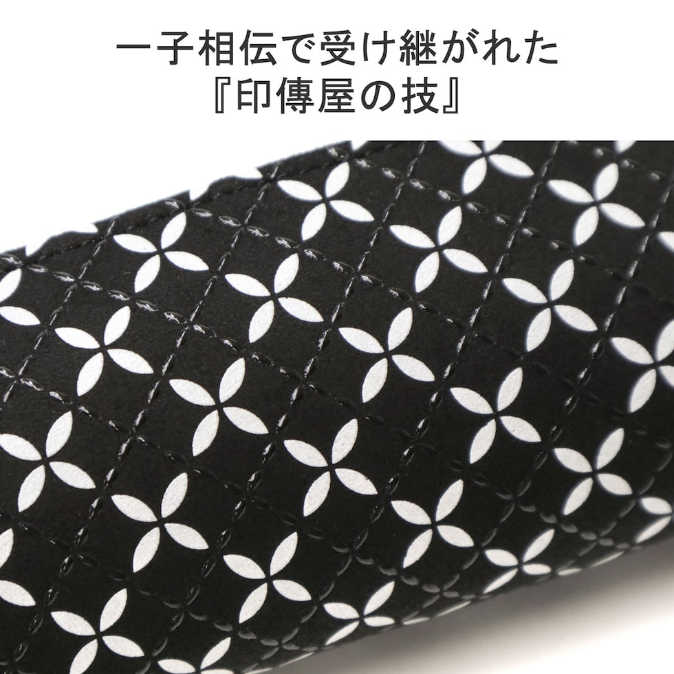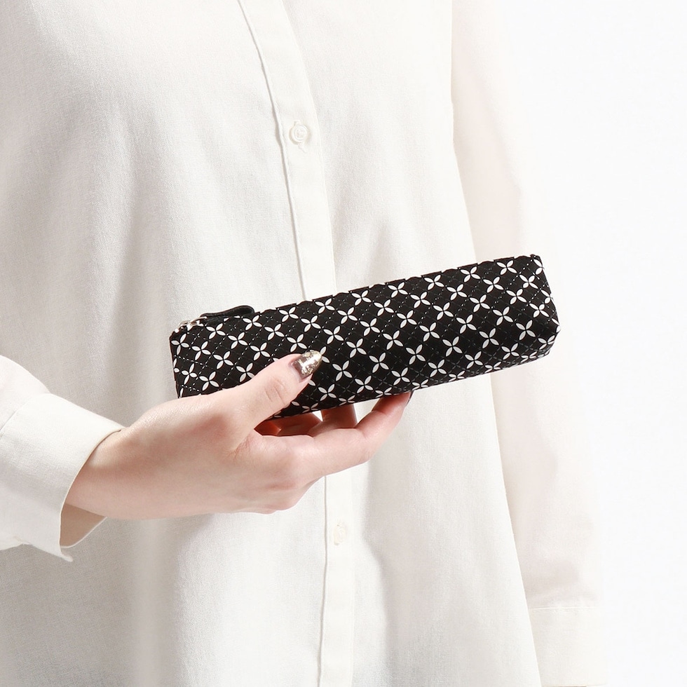 柔らかな鹿革の風合いに、漆柄が魅力の革工芸「印伝」のペンケースです。こちらの「そよか」は、軽やかで気の向くままに進んでいく“そよ風”をイメージしたシリーズ。幸せや縁が広がる模様として親しまれる七宝をつなげて、白更紗と黒漆のコントラストで描き、調和によって生まれるかたちを際立たせました。スマートでシンプルなフォルムのため、小さなバッグにも入りやすいのがポイント。普段使いにはもちろん、大切な人へのギフトにもおすすめです。