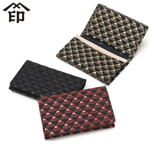 甲州の地で富士を仰ぎ見てきた印傳屋が、その高嶺を漆で描いた『たかね』シリーズの名刺入れ。黒地に赤漆・白漆・黒漆の文様が静かな和の美を宿し、上質な鹿革とともに優雅な存在感を表現。片面に中仕切りを備え、複数のカードを整頓しやすいつくりとなっています。また、しなやかで強度のある鹿革を使用することで、数十枚入れた状態でも型崩れしにくい仕上がりです。
