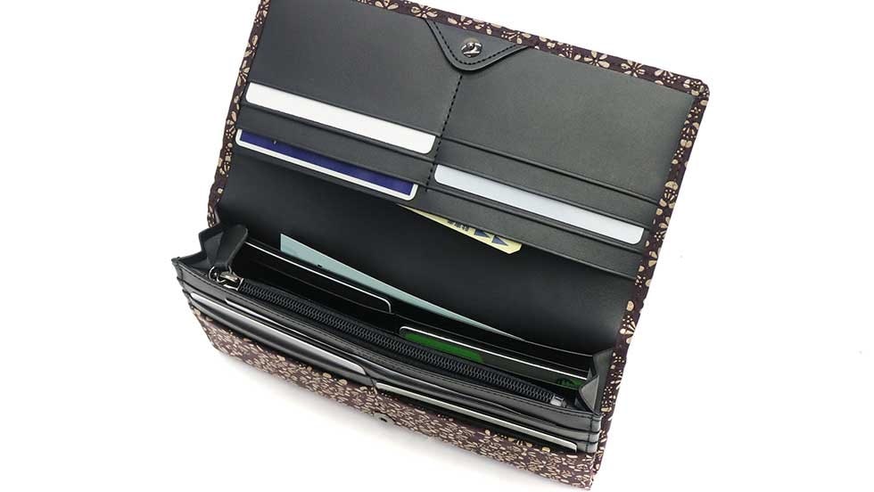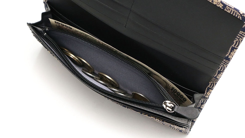 フラップタイプの収納部には内部に1ヶのお札入れと小銭入れ、14ヶのカードポケット、領収書などの収納に便利なポケットを4ヶ備えています。外側にもポケットを装備しており、収納力を高めています。甲州に四百年もの長い年月受け継がれる心、その脈々と受け継がれる職人の技と心が生み出す伝統美を手に取って味わっていただけます。