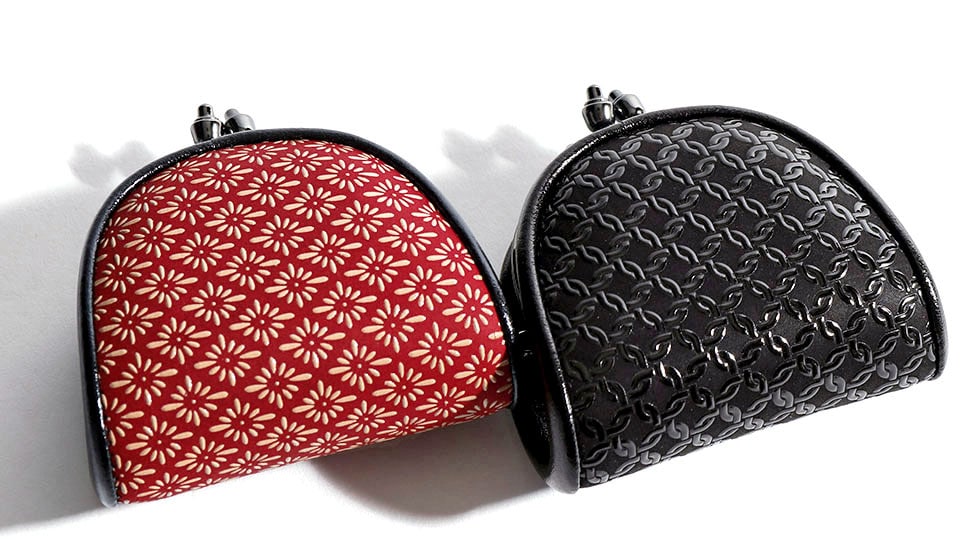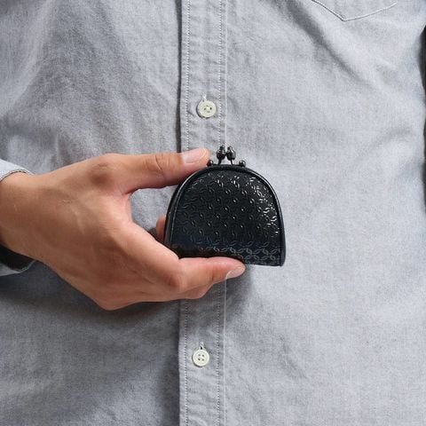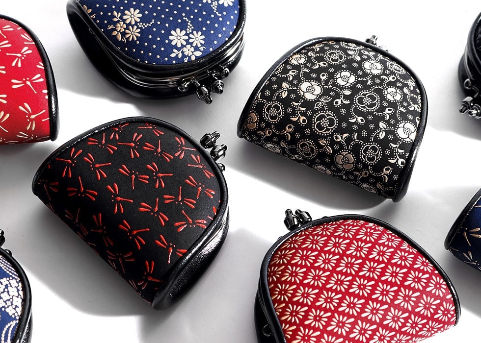 本体は、手の平に収まるコロンとした大きさとがま口デザインが印象的。金具部分は落ち着いた色味で仕上げられ、より一層気品のある落ち着いた雰囲気を醸し出します。職人が生み出した美しい柄が、さりげなく持つ人のこだわりを感じさせる逸品です。甲州に四百年もの長い年月受け継がれる心、その脈々と受け継がれる職人の技と心が生み出す伝統美を手に取って味わっていただけます。