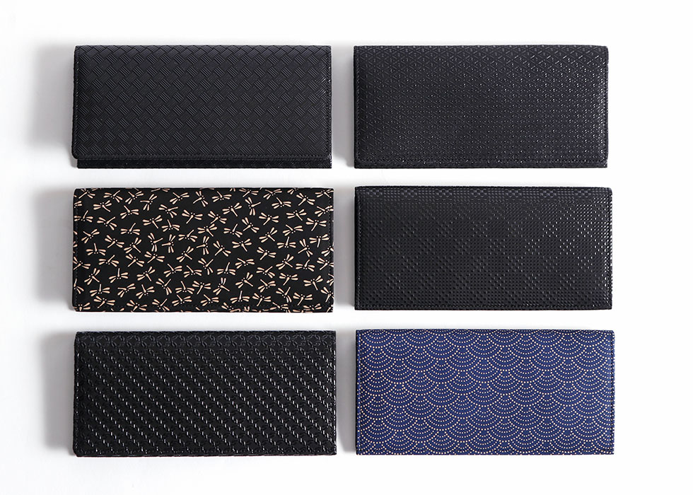 カラー|青海波(紺×白)|14-004、ひょうたん(黒×黒)|1-007、とんぼ(黒×白)|11-008、網代編(黒×黒)|1-158、変わり市松小(黒×黒)|1-167、輪繋ぎ小(黒×黒)|1-177