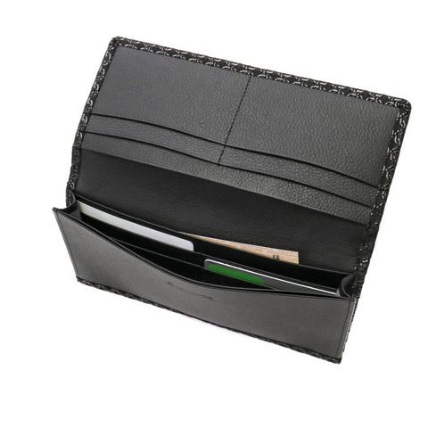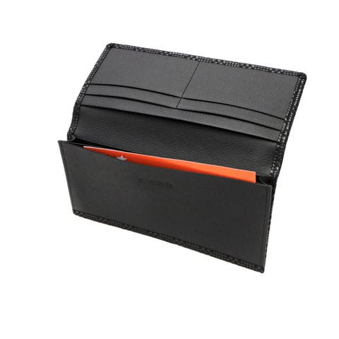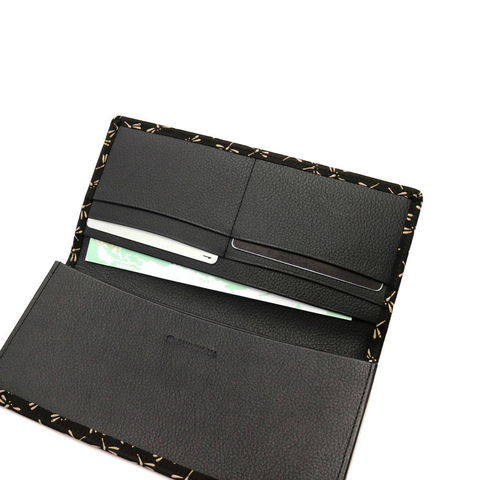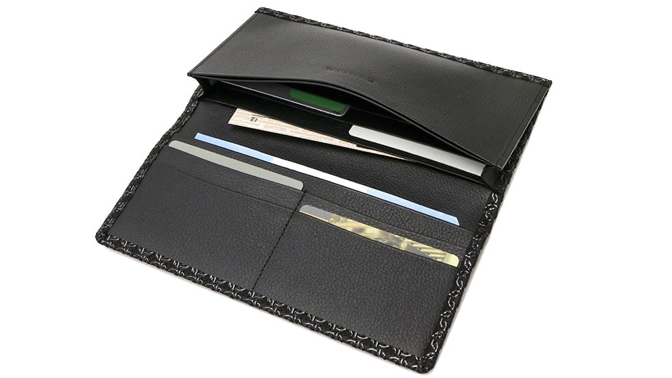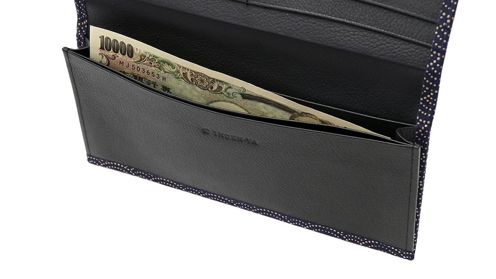 フラップタイプの収納部には1ヶのお札入れと、8ヶのカードポケット、領収書などの収納に便利なポケットを3ヶ備えています。小銭入れを設けない、スリムなフォルムも特徴で、鞄の限られたスペースにもすっと収まります。甲州に四百年もの長い年月受け継がれる心、その脈々と受け継がれる職人の技と心が生み出す伝統美を手に取って味わっていただけます。