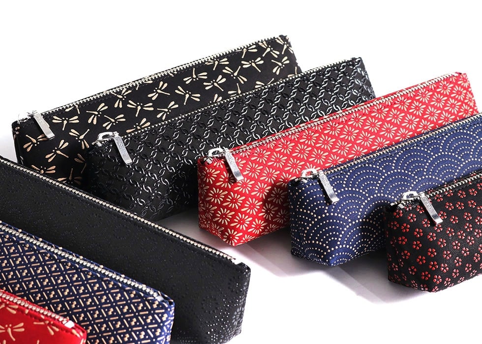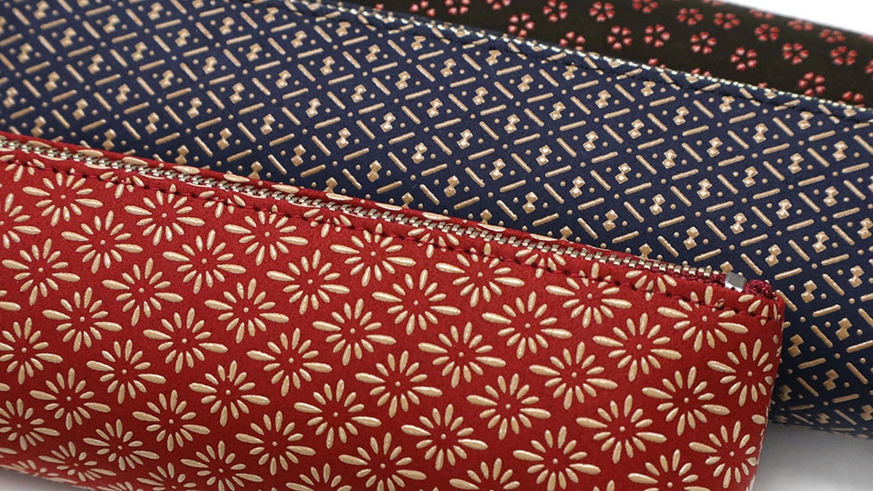 本体は、持ち歩くのもデスクに置いておくのも邪魔にならない、細身ですっきりとしたつくり。YKK製のファスナーは引手部分が華奢なデザインとなっており、繊細さを損なわない見た目に。職人が生み出した美しい柄が、さりげなく持つ人のこだわりを感じさせる逸品です。甲州に四百年もの長い年月受け継がれる心、その脈々と受け継がれる職人の技と心が生み出す伝統美を手に取って味わっていただけます。