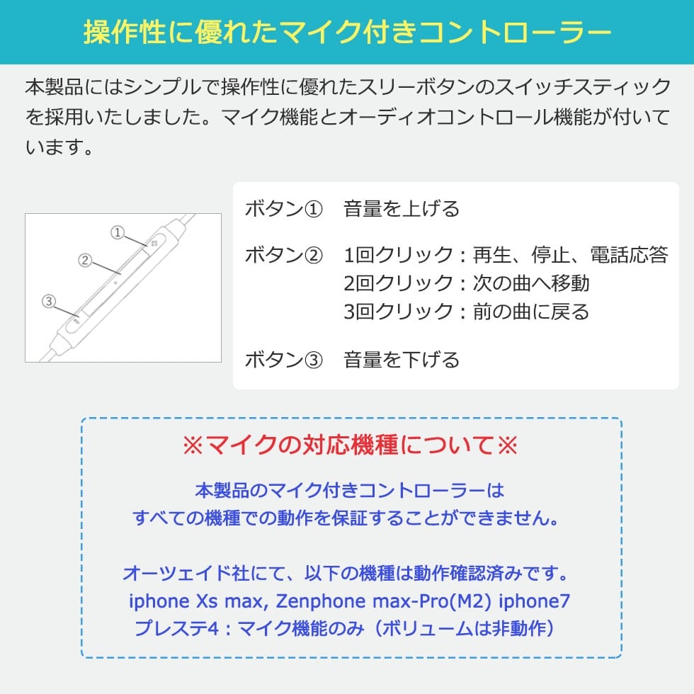 ケーブル長さ |約 1.2m(マイク、コントローラ付き)