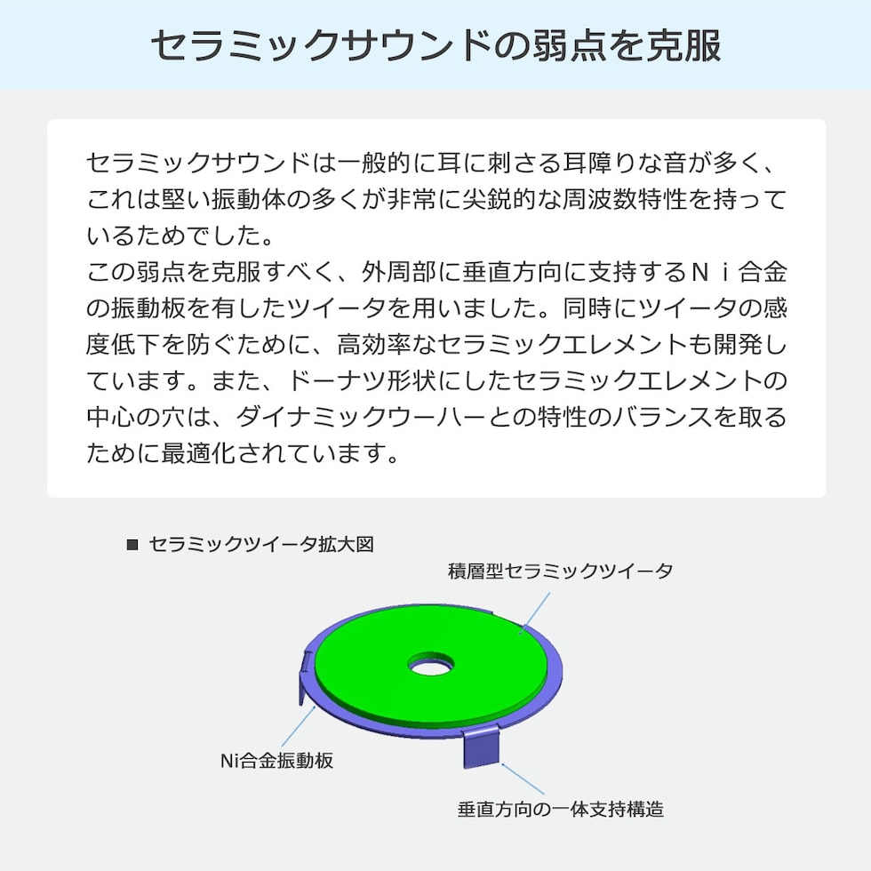 ・セラミックツイータは、一部の再生機で稀に発振することがあります。その場合は、再生機を交換してください。