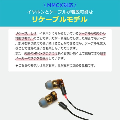 低域?高域の全域に渡り伸びのある音の再現にフォーカスした「雅/MIYABI」が、よりその方向性を極めた音作りへとリニューアルし『雅Mark2』として登場。こちらはMMCXのType-Mです。