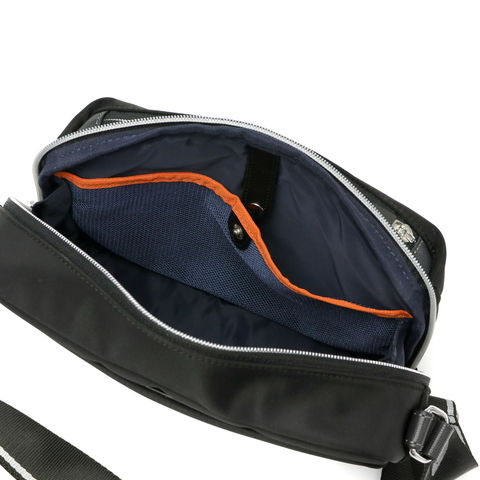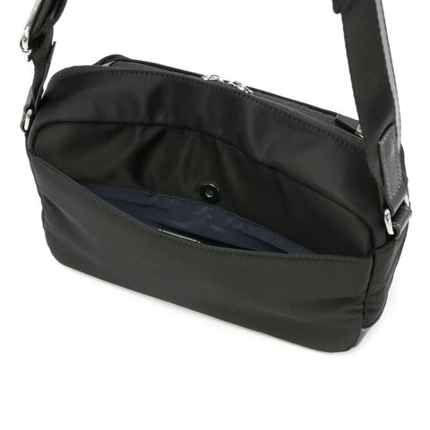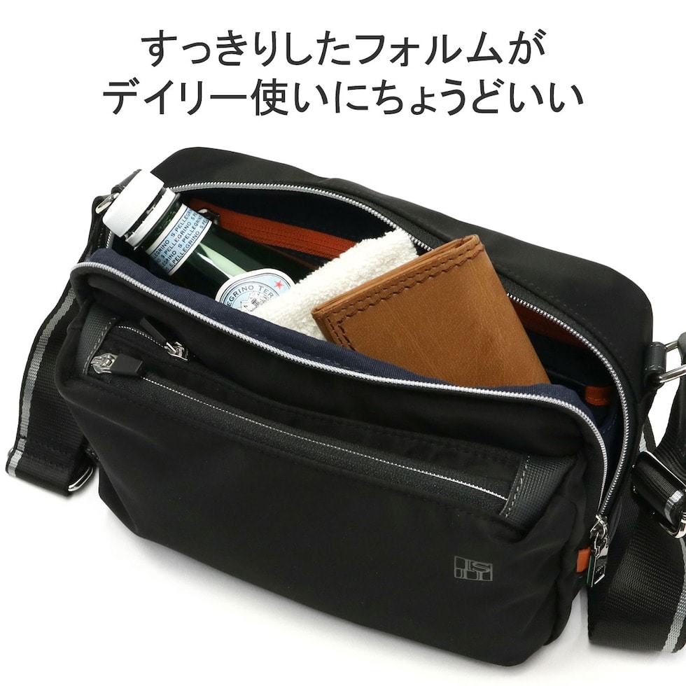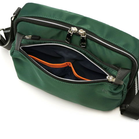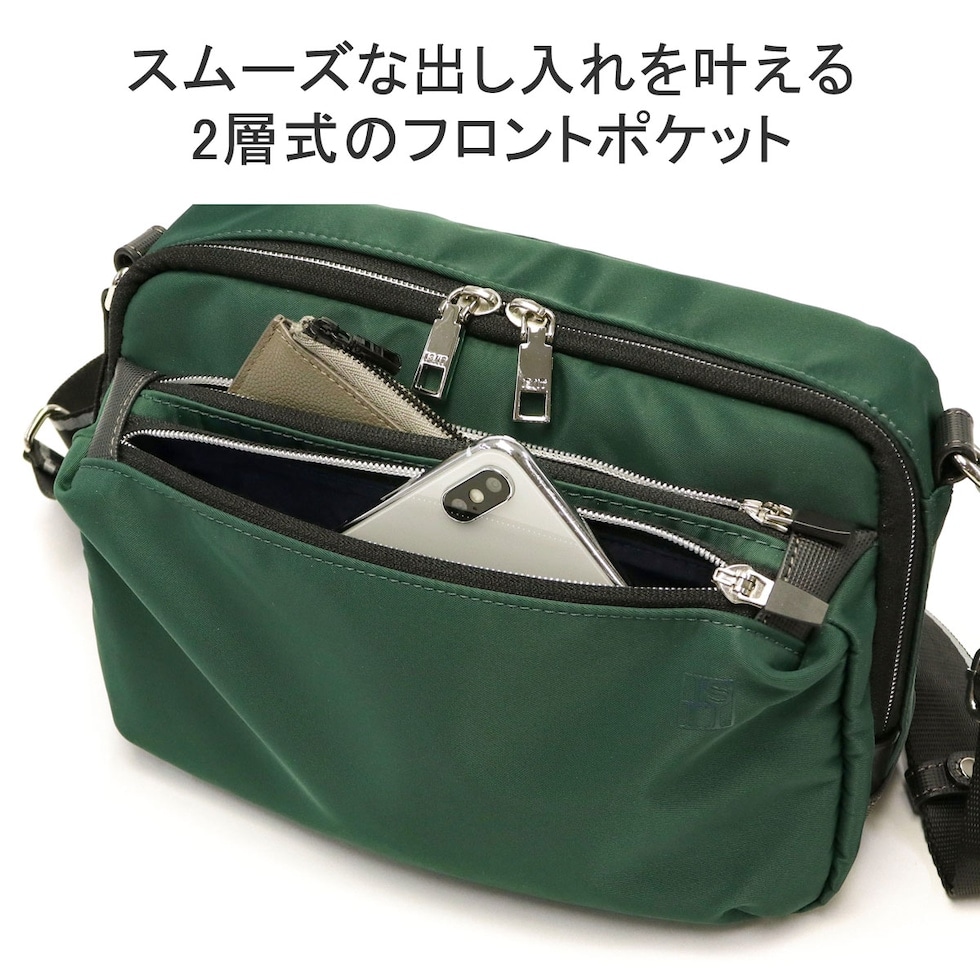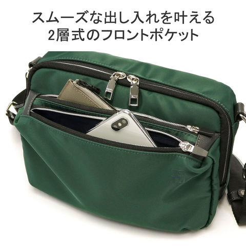 「収納しやすい」を追及して完成したショルダーバッグです。最大の特徴は外側フロントに設けられた2層式のポケット。使用頻度の高いアイテムをさっと取り出せる位置に設けられているだけでなく、アイテム別に管理の出来る2層構造が使い勝手の良さをぐっと高めてくれています。