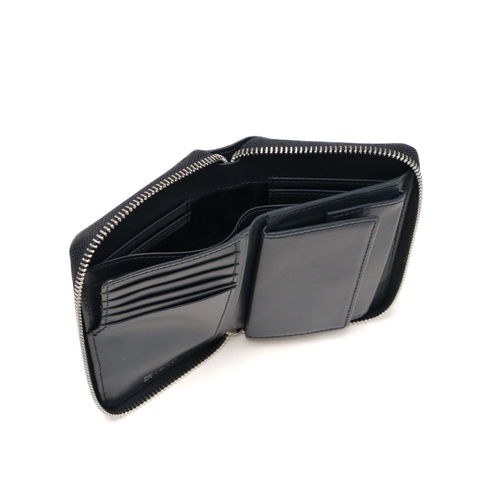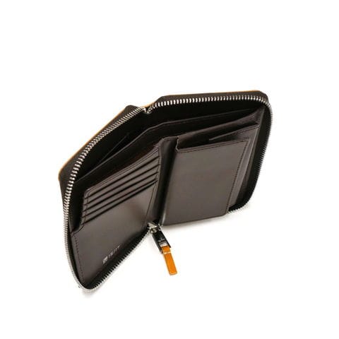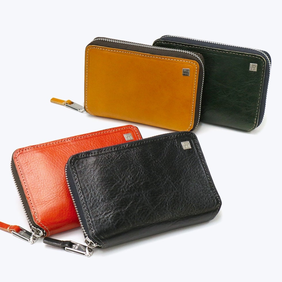 透明感のある光沢が美しいイタリアンショルダーレザーを使用した二つ折り財布。職人が手作業で染め上げることによって表れる自然なムラ感と、イタリアンレザーならではの美しい発色が魅力です。また、使い込んだ時に艶感が深まるエイジングを堪能することができ、大人の小物アイテムとして永く愛用していただけます。