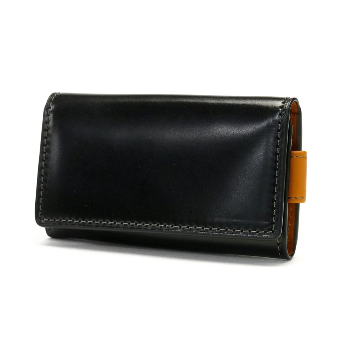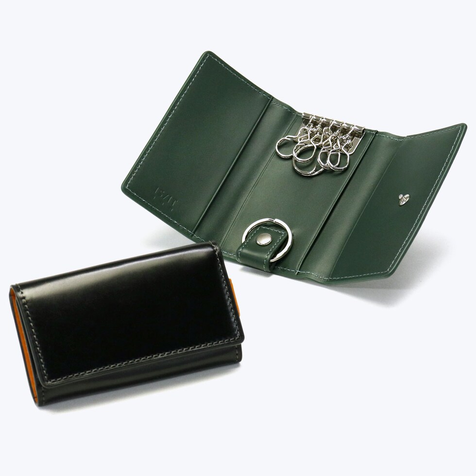 透明感のあるツヤ感が魅力の国産オイルコードバンを使用した小物シリーズのキーケース。「革のダイヤモンド」とも称されるコードバンを使用した本体素材は、農耕馬の臀部にあるコードバン層からしか採れない、非常に希少性の高い高級皮革。内装には、傷の目立ちにくい北米産原皮の牛革を使用しました。5連のキーリングに加え、スマートキーを装着するのに便利な大きめのキーリングを設け、サイドにはポケットを設けるなど、コンパクトながら機能性も抜群。経年変化によって輝きが増し、革本来の素材感をお楽しみいただける仕上がりとなっています。