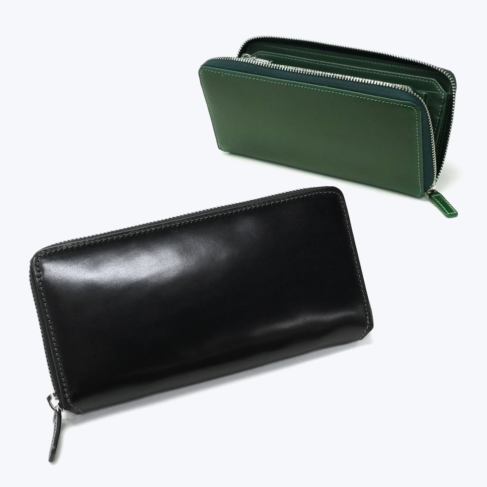 透明感のあるツヤ感が魅力の国産オイルコードバンを使用したラウンドファスナー長財布。農耕馬の臀部にあるコードバン層からしか採れない、非常に希少性の高い高級皮革で、「革のダイヤモンド」とも称されています。内装には、傷の目立ちにくい北米産原皮の牛革を採用。経年変化によって輝きが増し、革本来の素材感をお楽しみいただけます。