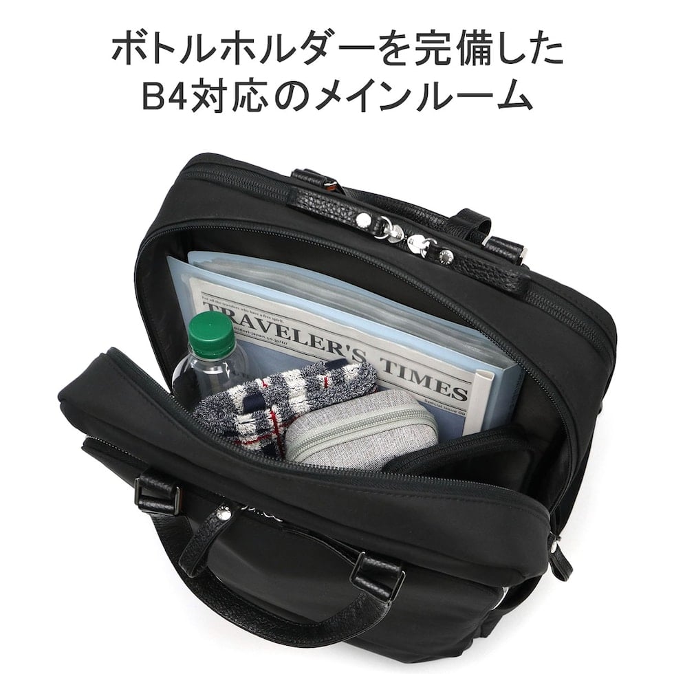詳細説明 本体には、水滴が滑りやすいマイクロガーター構造と撥水加工を施した素材を使用。マットな質感でありながら、高い耐水効果を持続します。フロントには、アイテムの仕分けや小物収納に便利な2つのファスナーポケットを設置。2層のメインルームには、前面側に大きめのジップポケットを、背面側にPCスリーブを完備し、書類やデバイス類を効率よく収納できる仕様となっています。