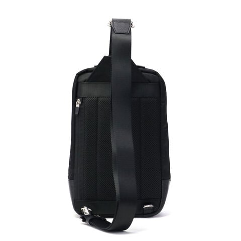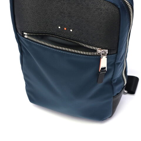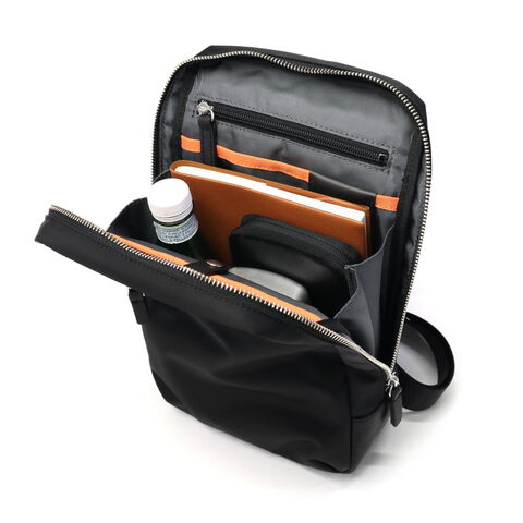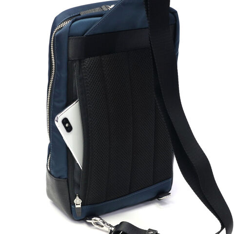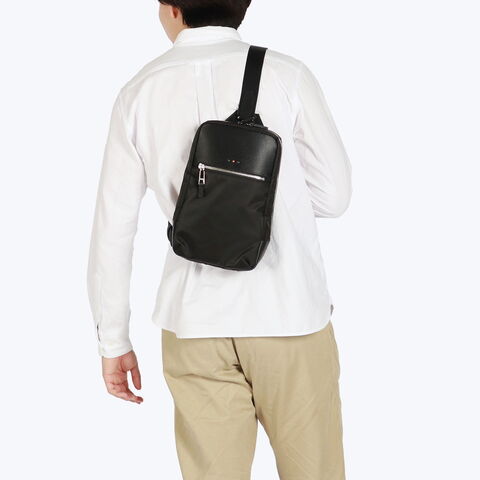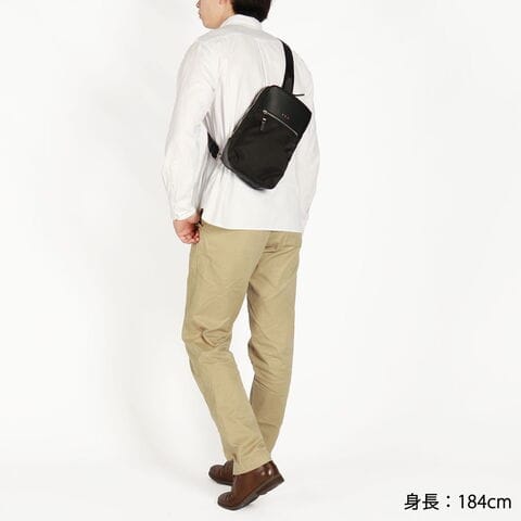 上品でソフトな風合いのナイロン素材と、凹凸感が際立つエンボスレザーの素材コンビネーションが映える、シンプルで大人カジュアルな「アンプル」シリーズ。こちらはシンプルなデザインのワンショルダーバッグです。メインルームは、500mlペットボトルが縦に収まる普段使いしやすいサイズ感。持ち方にあわせて左右に付け替え可能なストラップも嬉しいポイントです。