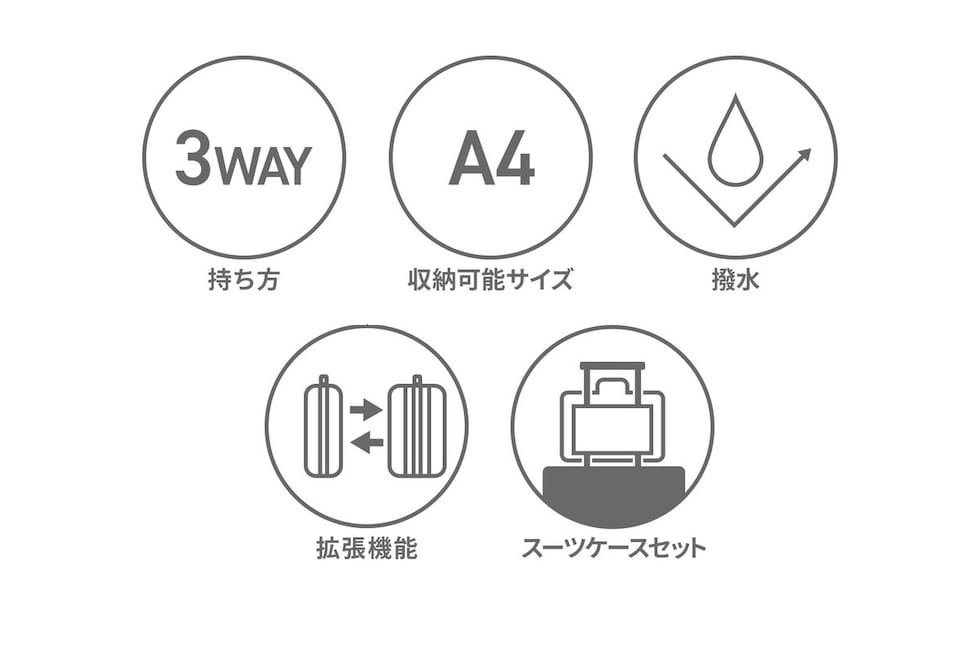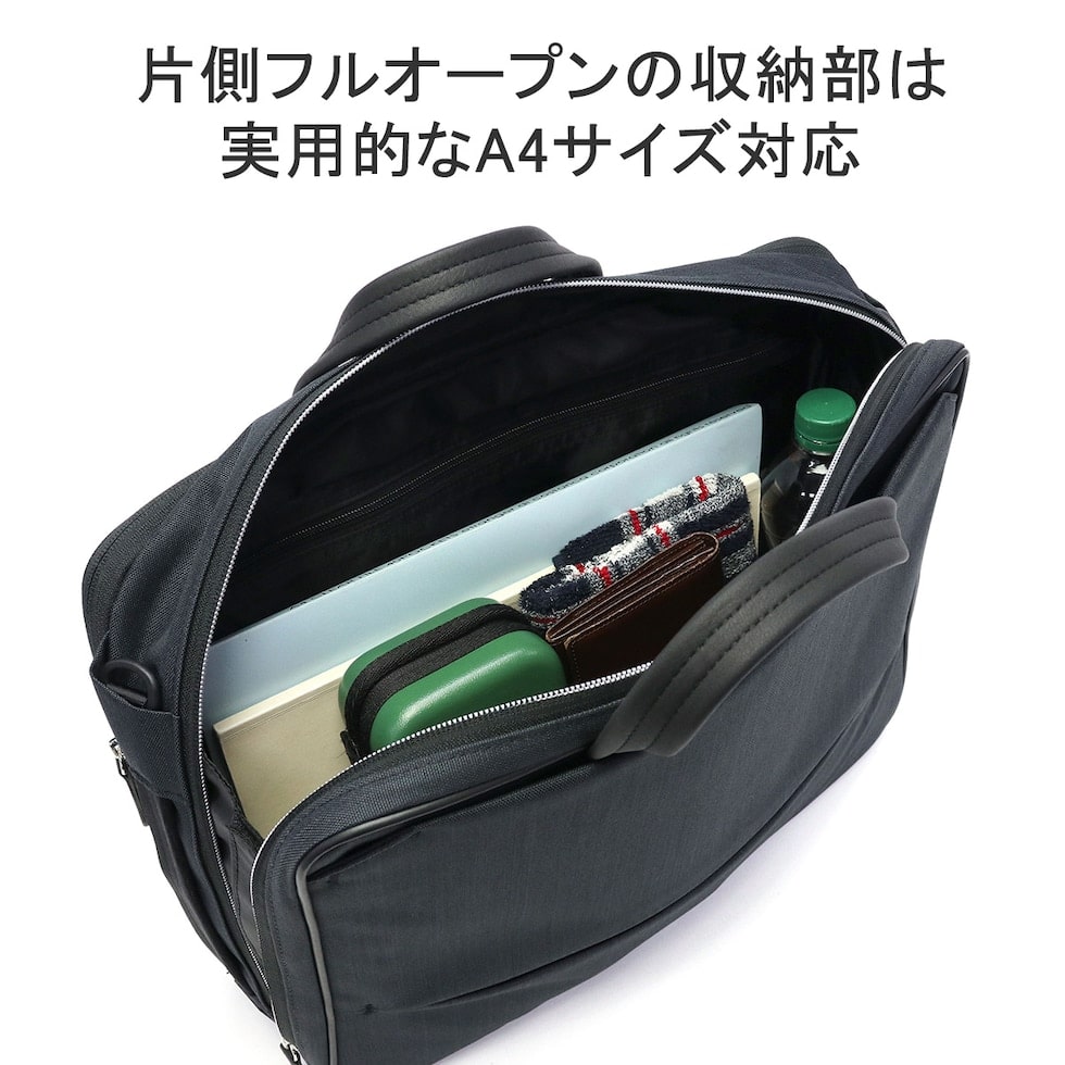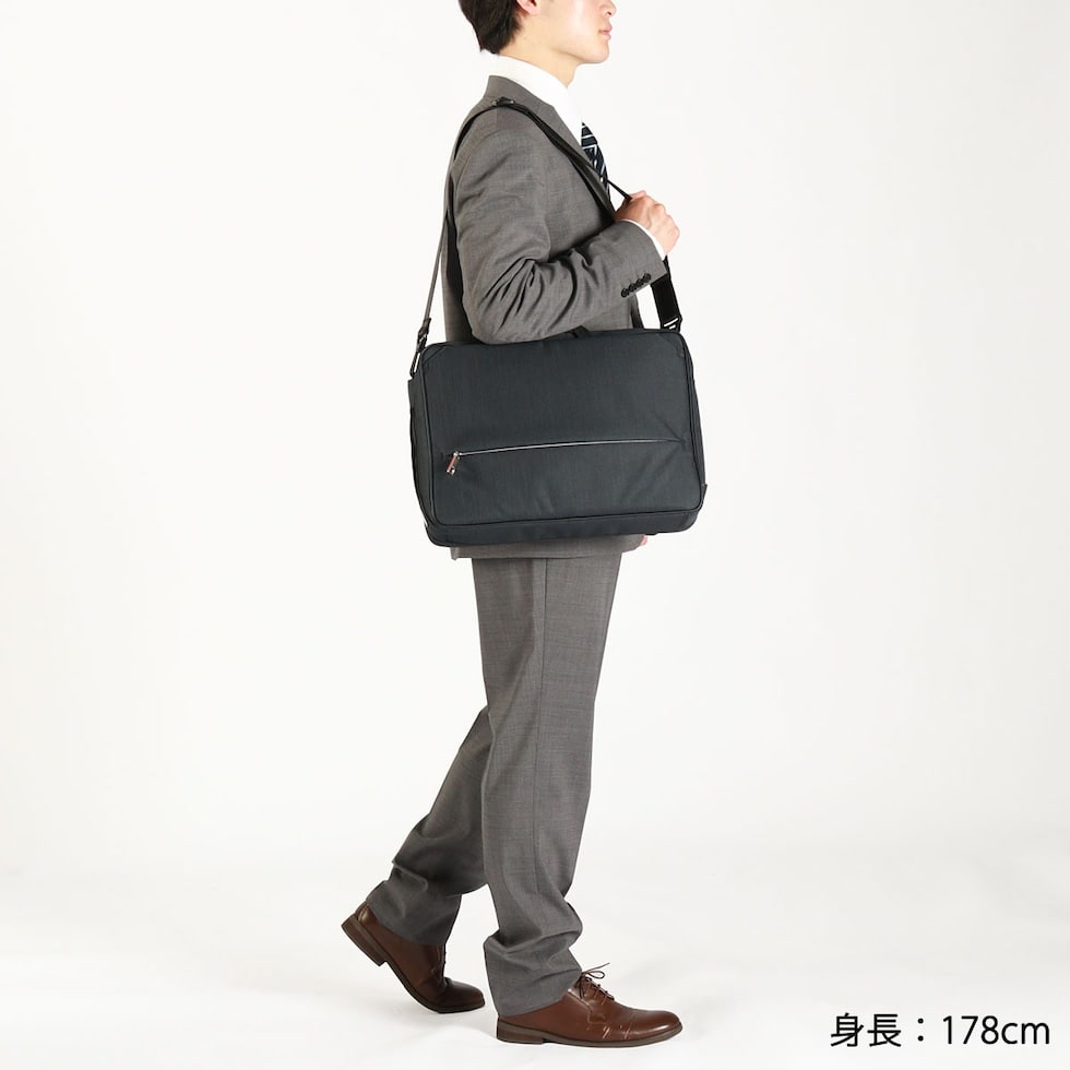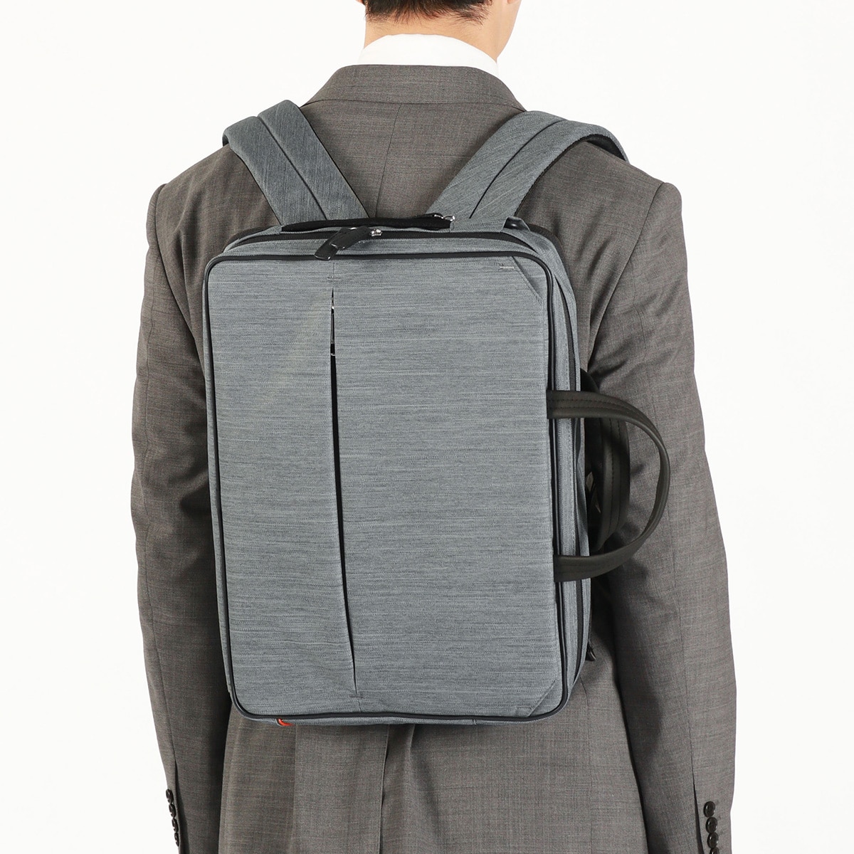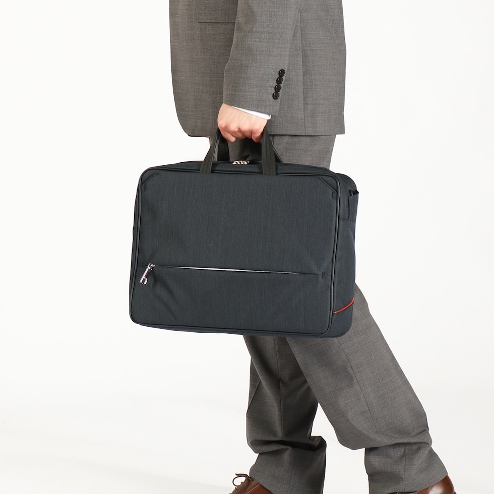 エコ通勤やジャケットスタイルにも合う「ルシェル」をより機能的にアップデートした『ルシェルII』シリーズ。こちらは、A4サイズ対応の3WAYビジネスバッグです。主素材にはシャンブレー調のポリエステル生地に撥水加工を施した生地を使用し、軽量に仕上げました。荷物の量に応じてマチが拡張できるエキスパンダブル機能を搭載。格納式のハンドルや、スマホなどの電子ツール収納に適したポケットなど機能性の充実したアイテムです。