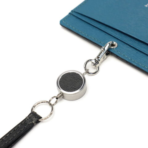 スモーキーカラーと内装のカラーコンビが魅力の『ノボII』。エンボスレザーを贅沢に使用し、その特徴的な質感を際立たせています。こちらのIDカードホルダーは、前面がカード段仕様になっており、背面は社員証やICカードなどの収納に便利な窓付きカード入れが完備。リール部分と本体は取り外しが可能です。ジェンダーレスなデザインとカラーコンビは、男女を問わず幅広い方にお楽しみいただけます。