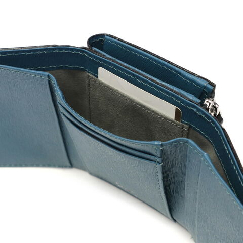 スモーキーカラーと内装のカラーコンビが魅力の『ノボII』。エンボスレザーを贅沢に使用し、その特徴的な質感を際立たせています。こちらの三つ折り財布は、手のひらに収まるサイズ感ながら、カード収納をたっぷり備えており充実の収納力。ジェンダーレスなデザインとカラーコンビは、男女を問わず幅広い方にお楽しみいただけます。