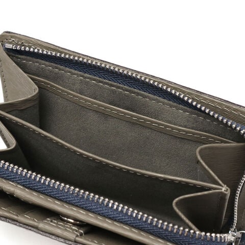 スモーキーカラーと内装のカラーコンビが魅力の『ノボII』。エンボスレザーを贅沢に使用し、その特徴的な質感を際立たせています。こちらのミドルウォレットは、収納力とサイズ感のバランスがとれた使い勝手の良いアイテムです。ジェンダーレスなデザインとカラーコンビは、男女を問わず幅広い方にお楽しみいただけます。