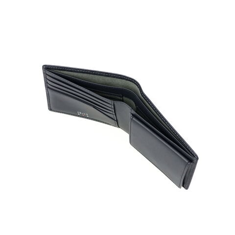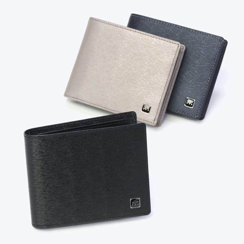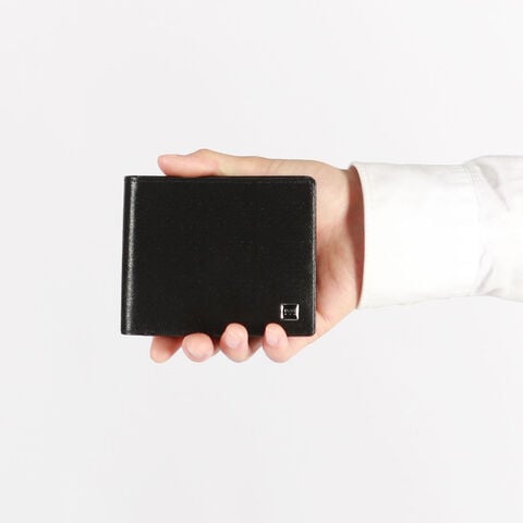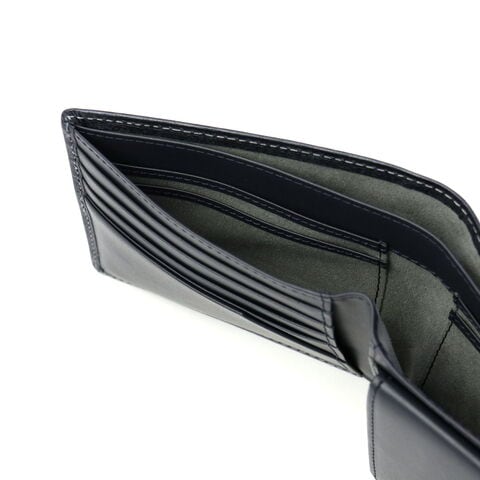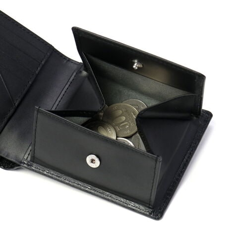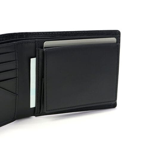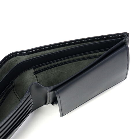 上品なエンボスレザーにエポブローチがポイントになったベーシックな小物シリーズ『ポリマー』の二つ折り財布。エンボスレザーは大人な雰囲気を演出するだけでなく、傷や汚れ、多少の水気に強いのも魅力。内装も非常にベーシックなつくりで、最低限の紙幣や小銭を持ち歩く方にオススメです。