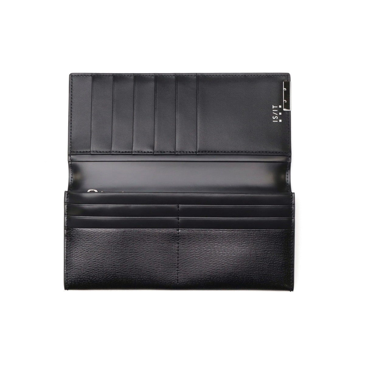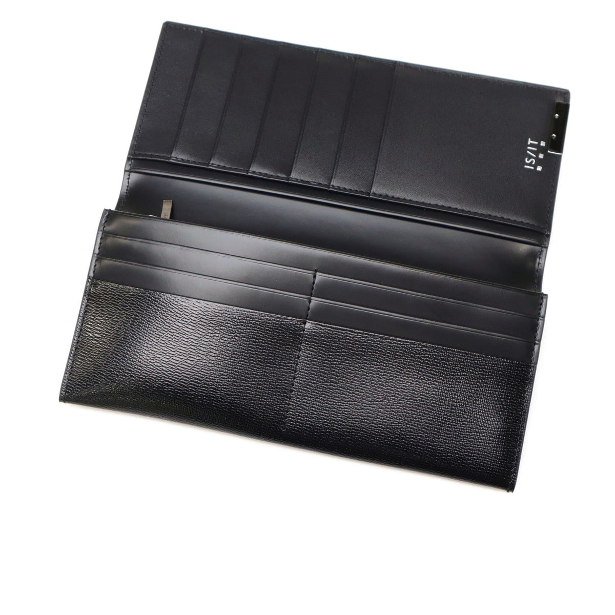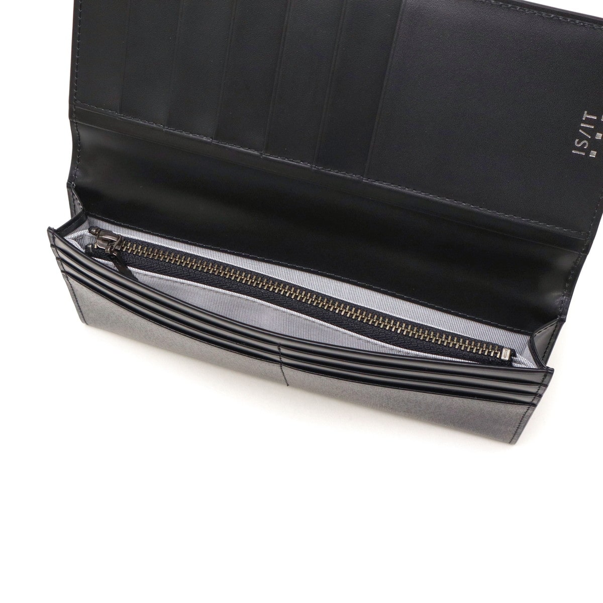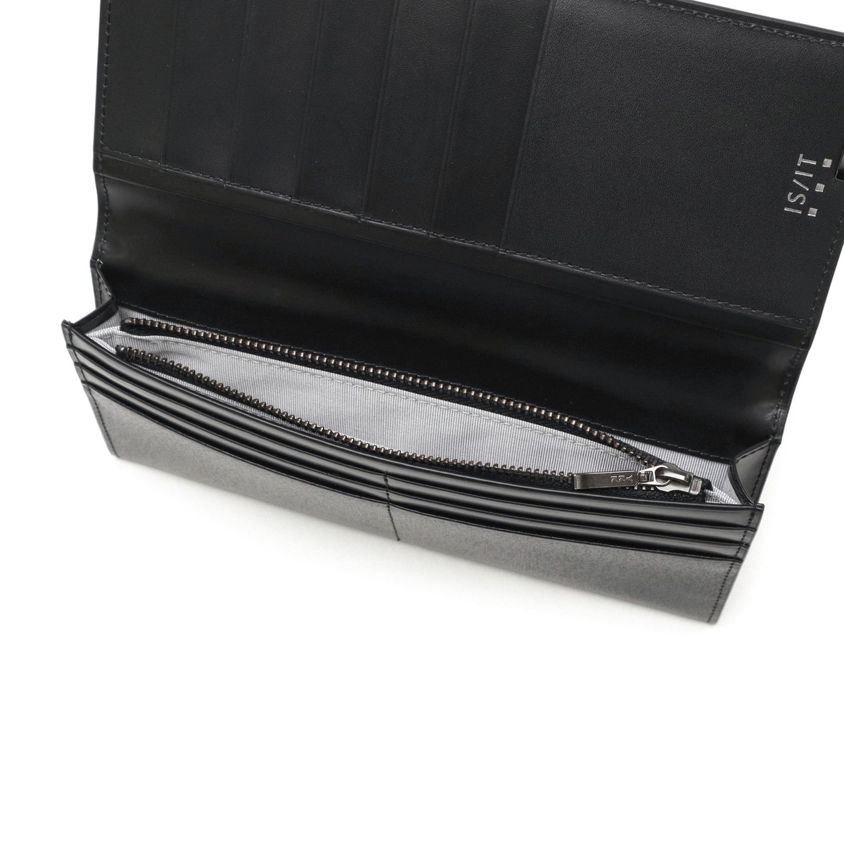 程よい艶革とメタルブローチが特徴の『PARKER/パーカー』の長財布。シンプルで高級感がありビジネスシーンにも使いやすいく、側面にはISITのアイキャッチである3ドットマークをあしらい、さりげなくブランド表現をしています。