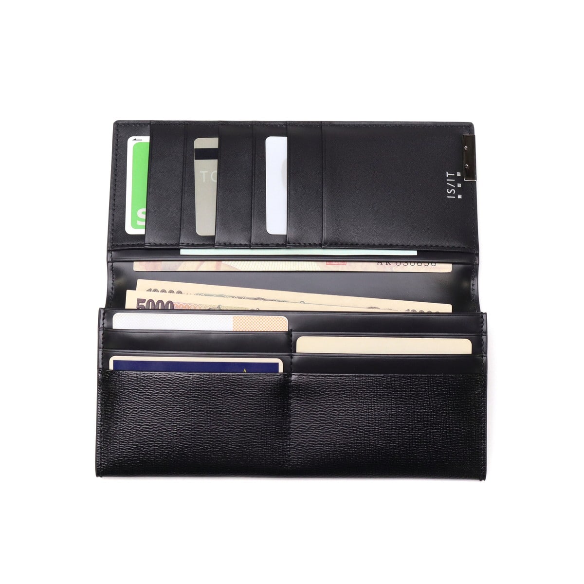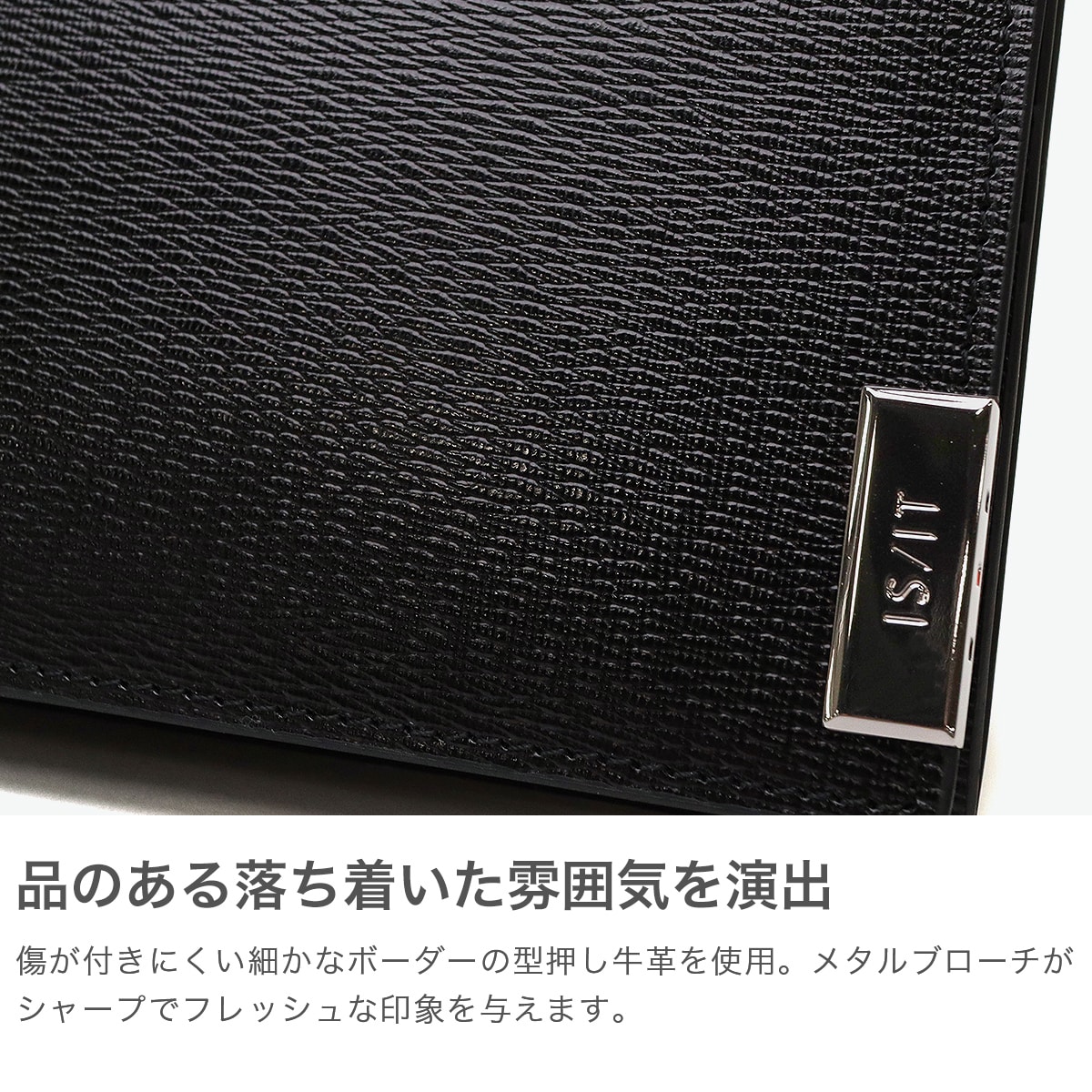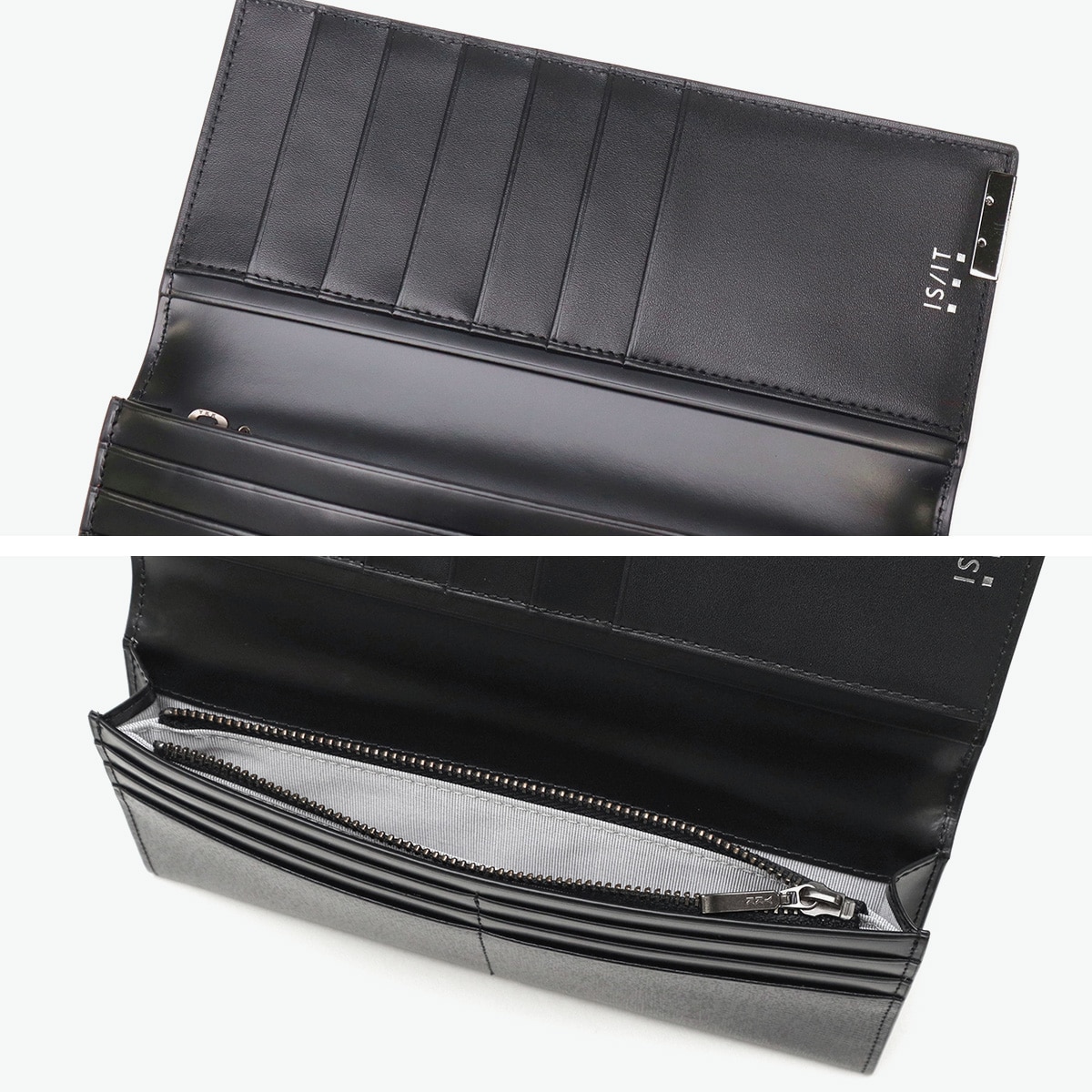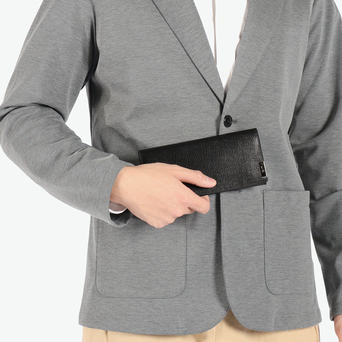 程よい艶革とメタルブローチが特徴の『PARKER/パーカー』の長財布。シンプルで高級感がありビジネスシーンにも使いやすいく、側面にはISITのアイキャッチである3ドットマークをあしらい、さりげなくブランド表現をしています。