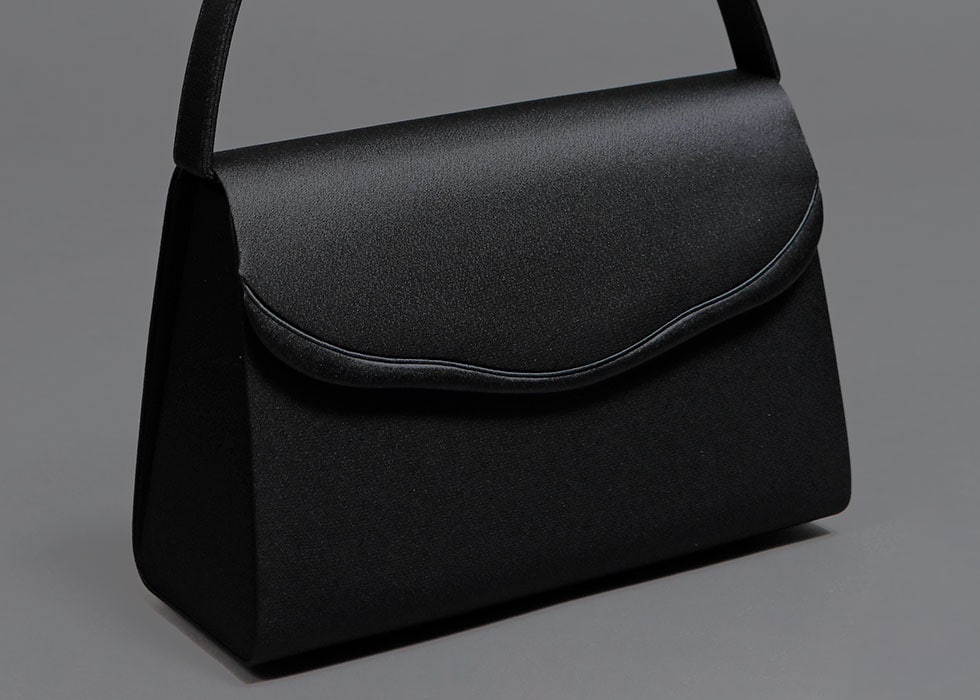 見た目に日本の装いの美しさは日本職人の手の中から生まれると信じ全ての仕立て、素材を国産にて丹念に手作りした『IWASA/岩佐』のフォーマルバッグ。シンプルなデザインに滑らかな切り替えの曲線をあしらい、女性らしい上品さを演出しています。