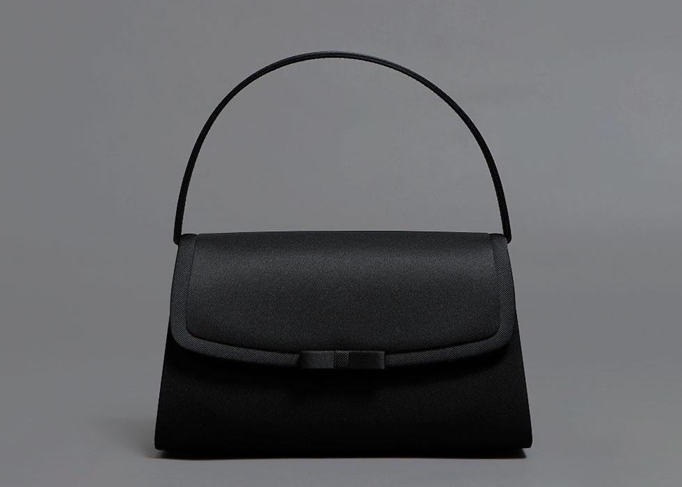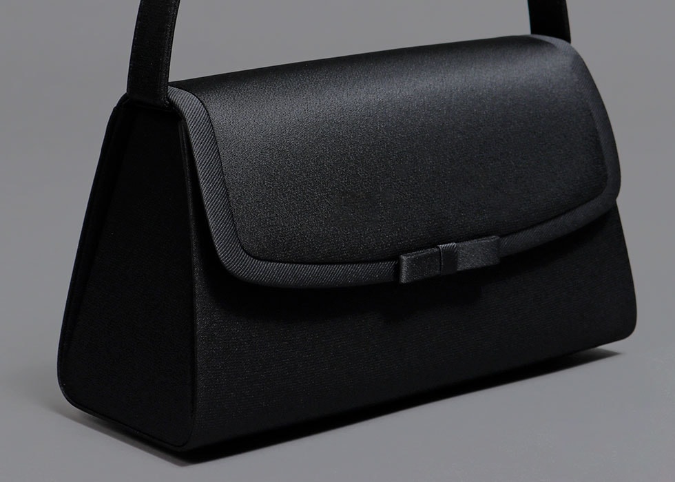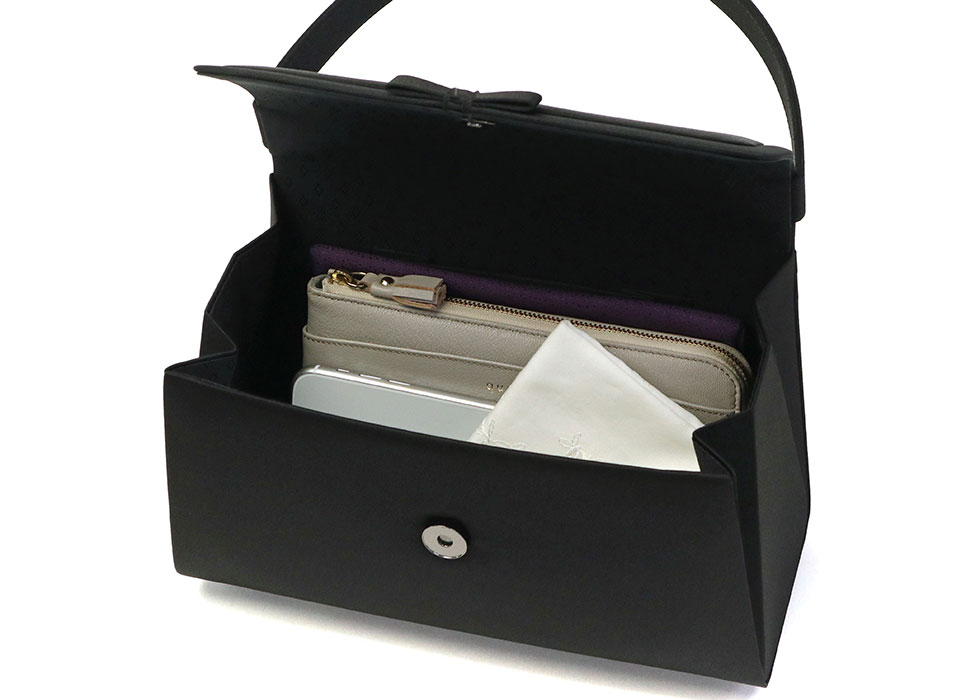 日本の装いの美しさは日本職人の手の中から生まれると信じ全ての仕立て、素材を国産にて丹念に手作りした『IWASA/岩佐』のフォーマルバッグ。すっきりしたデザインに、さり気なくリボンをあしらい女性らしい上品さを演出しています。