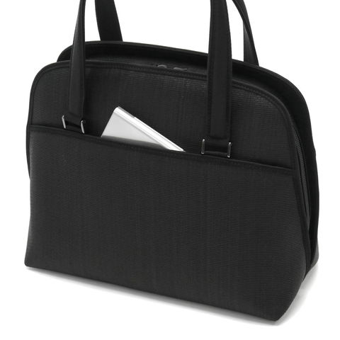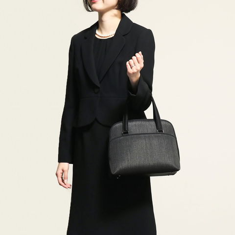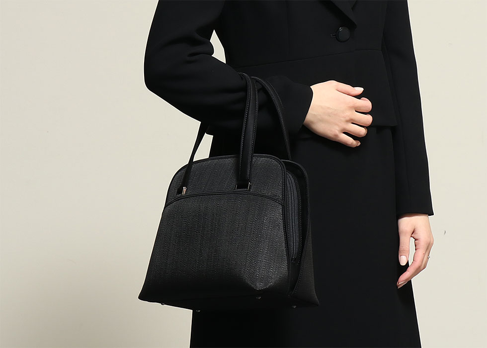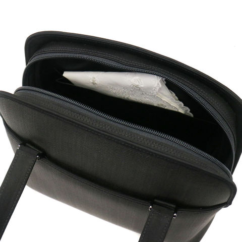 開口部のダブルファスナーは大きく開き、荷物の出し入れがしやすいつくり。お財布や袱紗、ハンカチなどの身の回りのアイテムの他にも、500mlのペットボトルも収納できるサイズになっているので、様々なフォーマルシーンで重宝し、普段から荷物が多い方でも安心してお持ちいただけます。