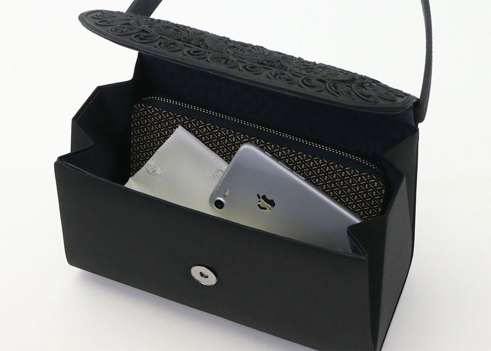 お財布や袱紗、ハンカチなどの身の回りのアイテムの持ち歩きに便利な使い勝手の良いサイズ感。内側にはポケットも設けられ、細かなアイテムをスマートに取り出すことができます。