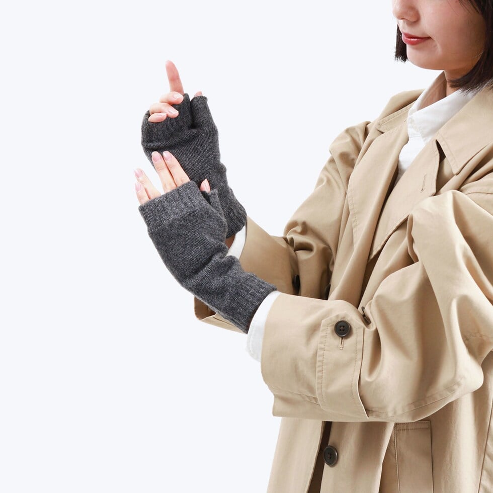ふっくらと暖かい、上質なカシミア素材を使用したリストウォーマー。フィンガーレスタイプなので、着用したままスマートフォンの操作が可能です。デスクワークや自宅で読書するときなど、手先が冷える室内での防寒にもおすすめ。手を使いたいときにわざわざ外すことなく、スムーズに作業ができ快適に過ごせます。