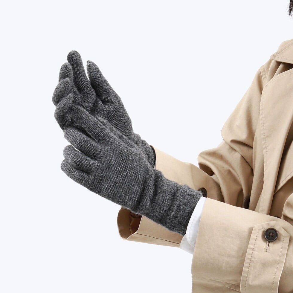 ふんわりと柔らかい、上質なカシミア素材を使用したショートグローブ。手の甲から手先までしっかり覆える5本指タイプで、寒い冬の風から指先をしっかり守ってくれます。滑らかな肌触りが気持ちよく、手指に沿う形で程よくフィット感のある着け心地です。ベーシックなデザインでオンオフ問わず使えるため、飽きることなく永く愛用できます。