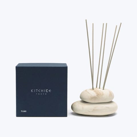 2つの石を重ねたような見た目のリードディフューザー。子供の頃の川辺の遊びや山の神様へのお供えを彷彿とさせ、日本の風土や歴史を感じられるデザインとなっております。別売りのオイルやスティックを使用して、部屋中に香りを広げてくれるアイテムです。