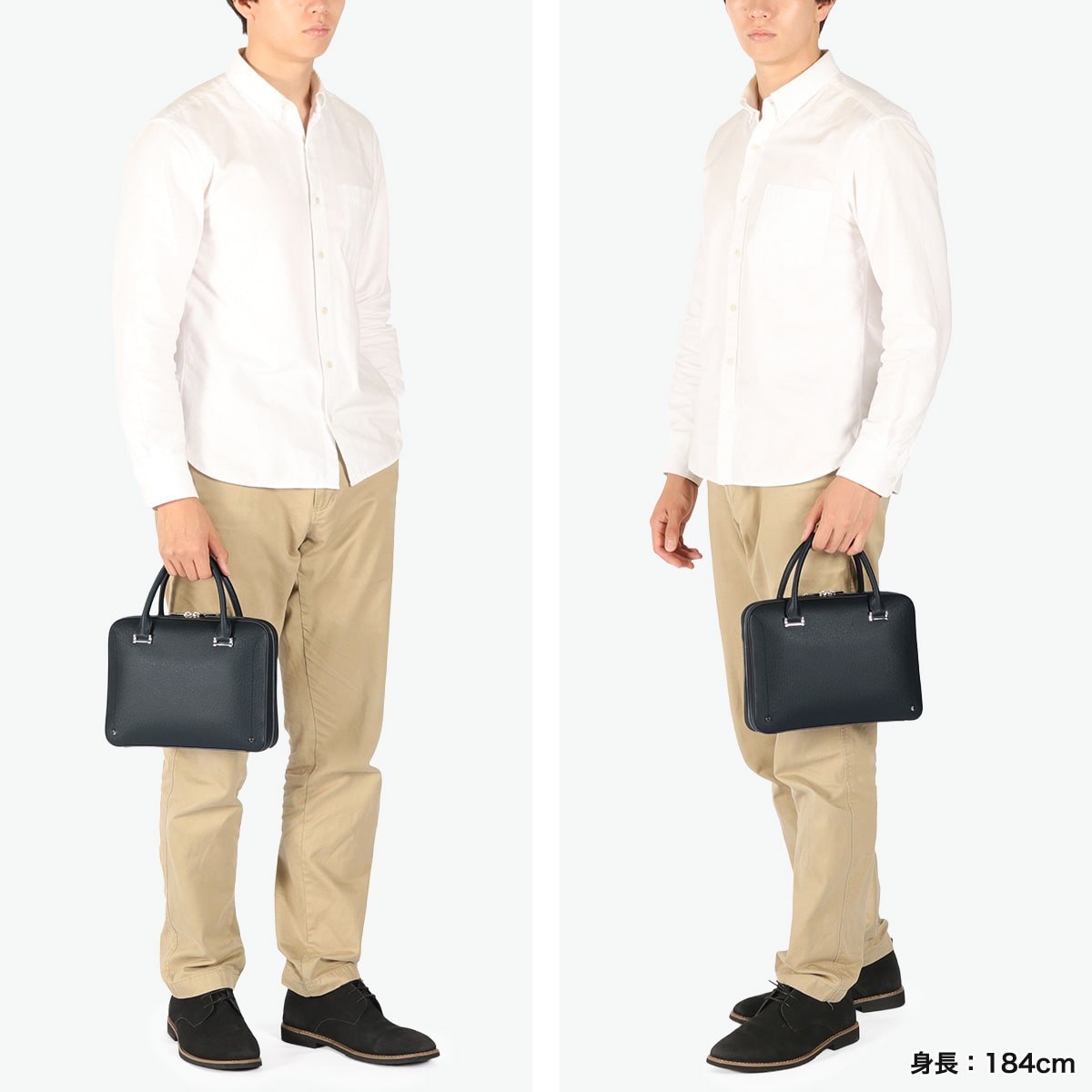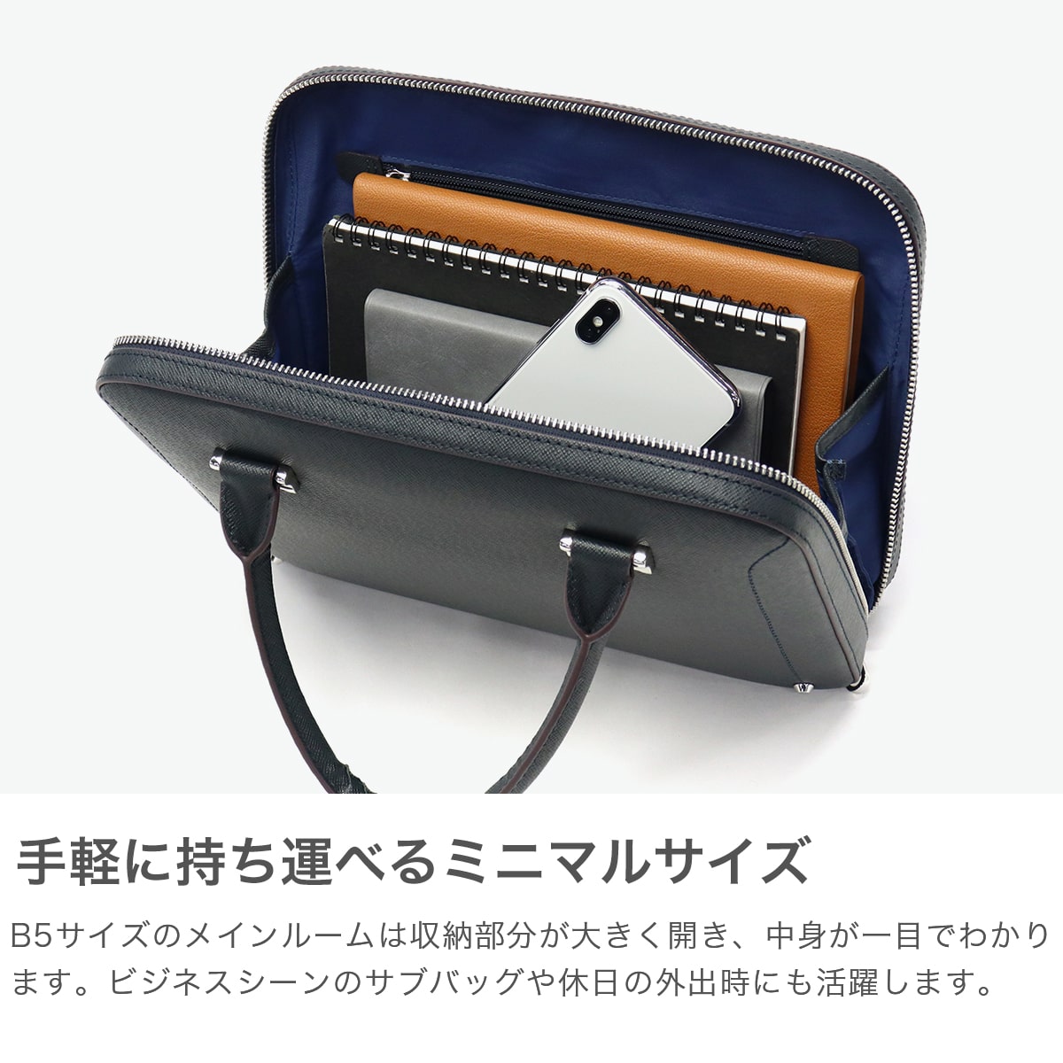 手間のかかるポストミシンを駆使することで、立体的なフォルムで仕上げた『Sottile/ソッティーレ』シリーズのミニブリーフケース。シンプルで飽きのこないデザインはスーツと相性が良く、上質な佇まいでビジネスシーンをより引き立てます。落ち着いたカラーリングで手軽に持ち運びができるサイズのため、休日用としても活躍できるバッグです。