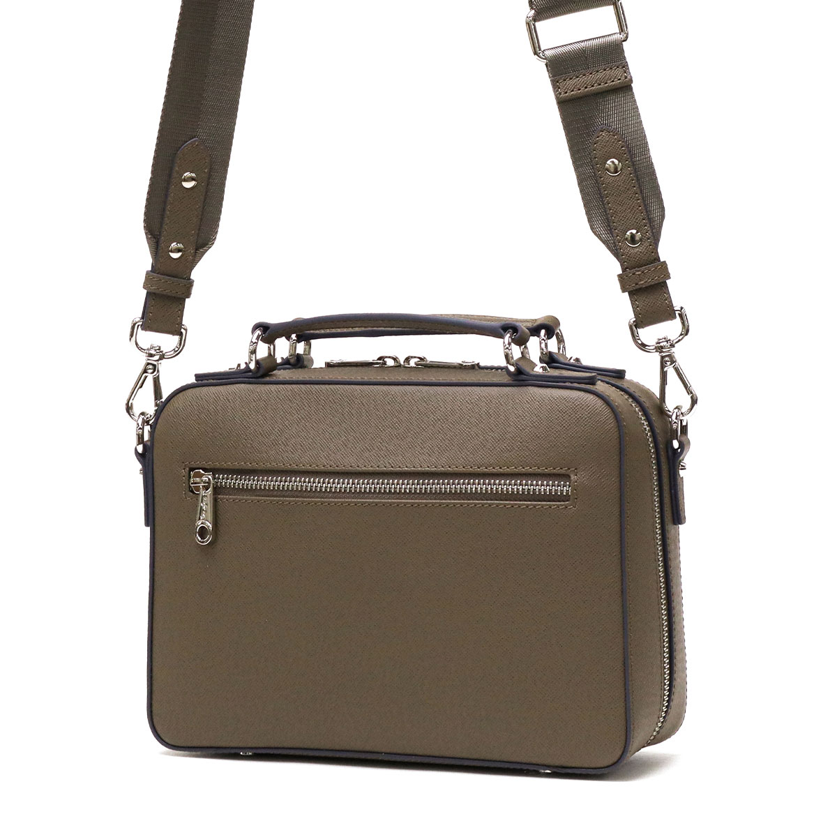 手間のかかるポストミシンを駆使することで、立体的なフォルムで仕上げた『Sottile/ソッティーレ』シリーズの Box2wayミニショルダー。落ち着いたカラーリングと手軽に持ち運べるサイズ感が魅力。ストラップを外せばフォーマルなハンドバッグとしてもお使いいただけます。ビジネスシーンから休日のおでかけまで幅広くマッチするデザインになっています。