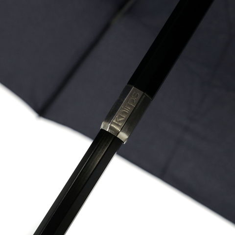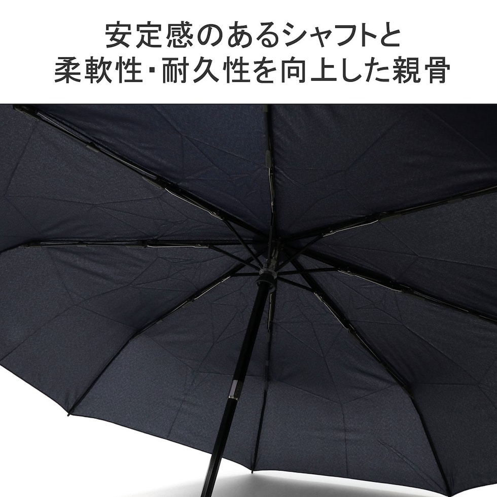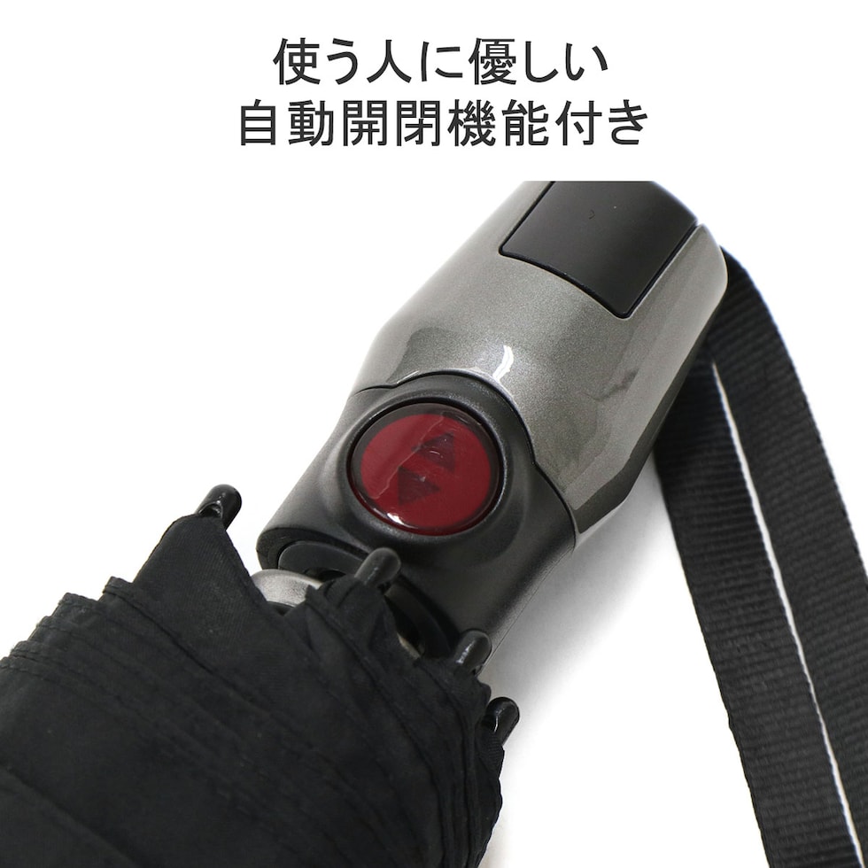 本製品はシャフトを押し込むとき、途中で止めたりうっかり手を滑らせてしまっても、シャフトが元の長さまで戻ることがなく、不意に飛び出さないように安全機構が備わっています。自動開閉の押しボタンは、操作しやすい大きなデザインなのもポイント。本体はアルミニウムとスチールを使用したシャフトで安定性を高め、樹脂ジョイントにより親骨の柔軟性と耐久性を向上させています。また、出し入れしやすいジップ仕様の収納ケースが付属しています。