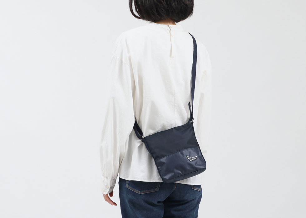 おでかけにぴったりな軽量バッグシリーズ『ストロール』のコンパクトなショルダーバッグ。軽くハリのある艶やかなナイロンと、シレ加工を施した生地をコンビ使いしています。落ち着いた色味とシンプルな外観で、大人の女性が持つに相応しいアイテムです。