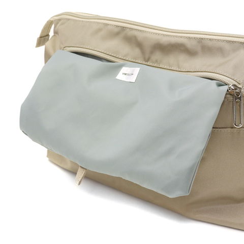 背面には、抗菌・抗ウイルス生地を使用したVIRTECTポケットを備えています。マスクやスマートフォンなど衛生面の気になるアイテムを収納するのにも便利です。また、ポケットの底には引手が付き、袋部分を外に出してふきとりが行いやすいようになっています。バッグの中を清潔に保てる機能性も魅力的です。