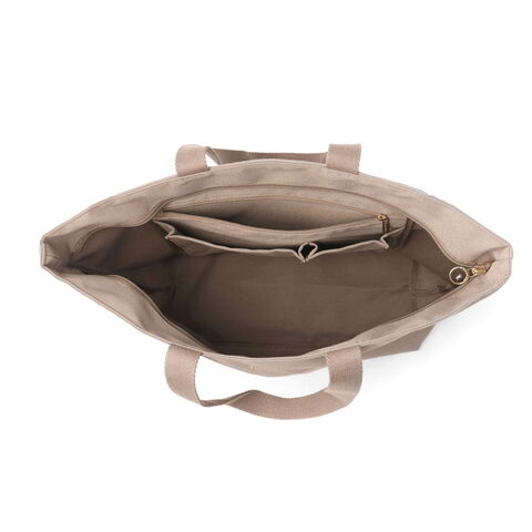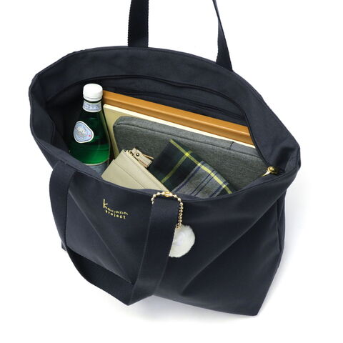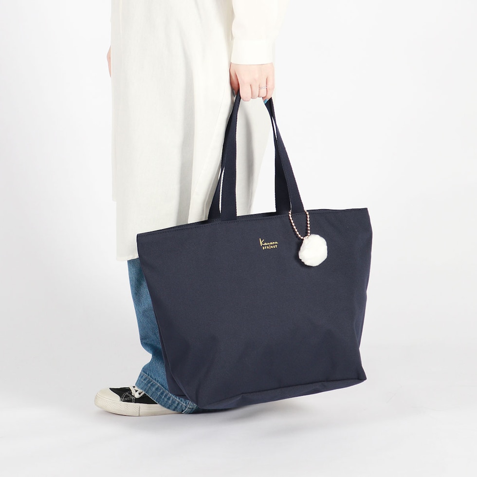 シンプルで女性らしいデザインが魅力の大容量トートバッグ。A4サイズ対応の内装は、複数の小物用ポケットを備えた設計で、普段使いはもちろん旅行のサブバッグにも活躍します。また本体には、旅先でハッピーが生まれますように。そして、元気で帰ってきますように。そんな願いをこめられた旅のお守り「カナナ」を付属しています。