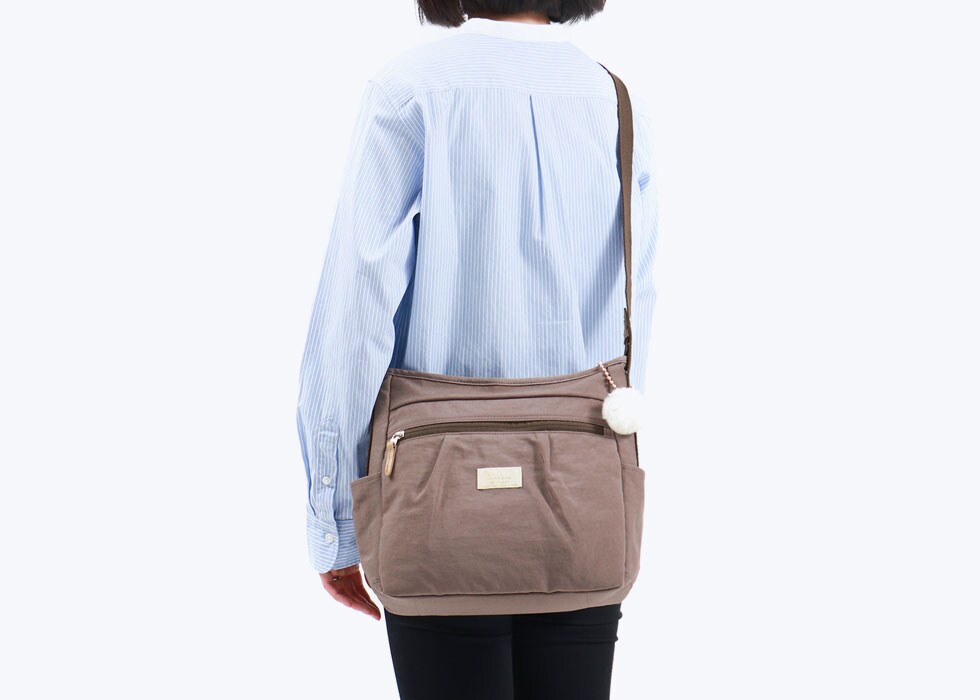 リラックス感あるワッシャーナイロンがポイントの『アッサム』シリーズのショルダーバッグ。大人カジュアルを楽しめる落ち着きのあるカラーは、どんなコーデにも合わせやすく、使いやすいデザインです。スクエア型で深いハイトが魅力。生地には撥水加工も施しており、急な天候の変化にも対応できます。