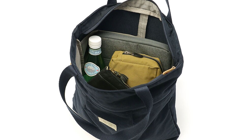 メイン収納部はA4サイズが収まる、大きすぎず小さすぎない程よいサイズ感。また内・外部には仕分け可能なポケットが装備しており、分けておきたいアイテムの収納に便利です。お出かけや出勤などオンオフ問わず様々なシーンで活躍するアイテムです。
