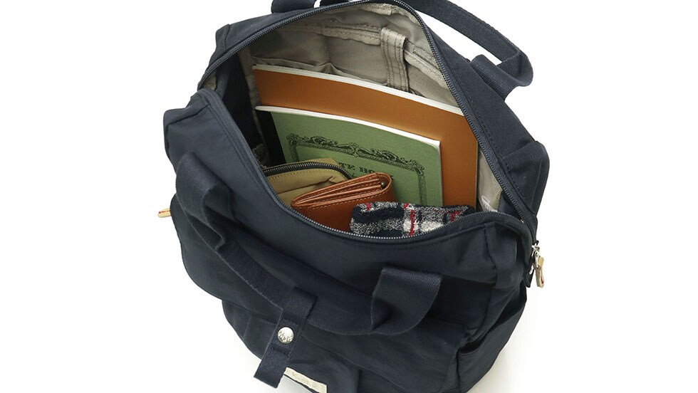 メインルームはA4がゆったり収まるサイズ感。貴重品やポーチなど外出時に必要なアイテムをしっかりとまとめてくれます。内部には複数のポケットが備わっており、荷物を仕分けて管理することが出来るのでバッグ内をすっきり保つことはもちろん、出し入れもしやすいつくりになっています。